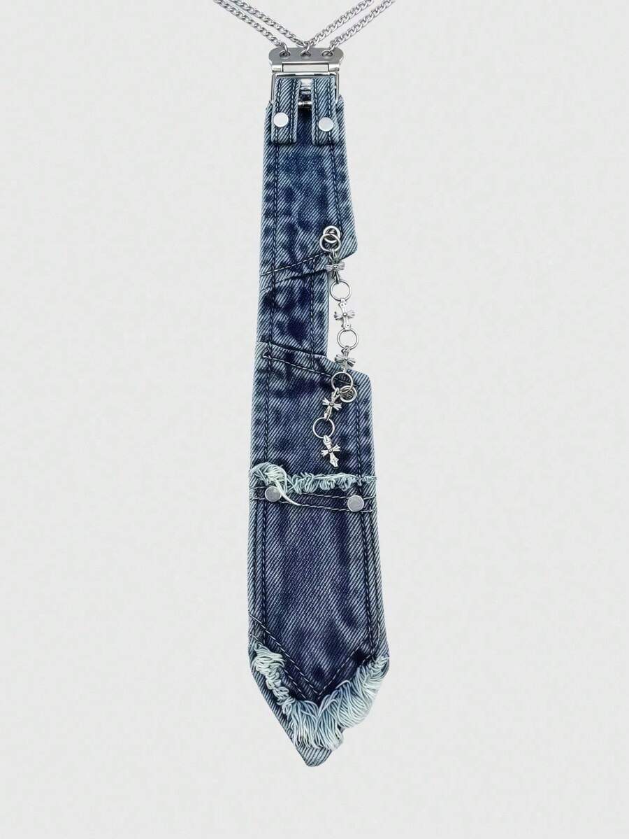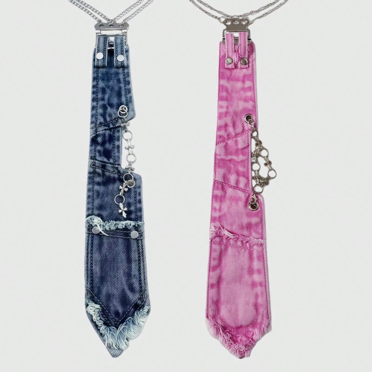 Grunge Punk 2Pc Blue And Pink Y2K Millennium Spice Girl Multi-Gas Eye Cross Metal Decoration Rough Edge Splicing Old Fashion Simple Couple Tie Combination, Suitable For College, Shopping, Commuting, Parties, Etc