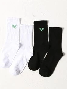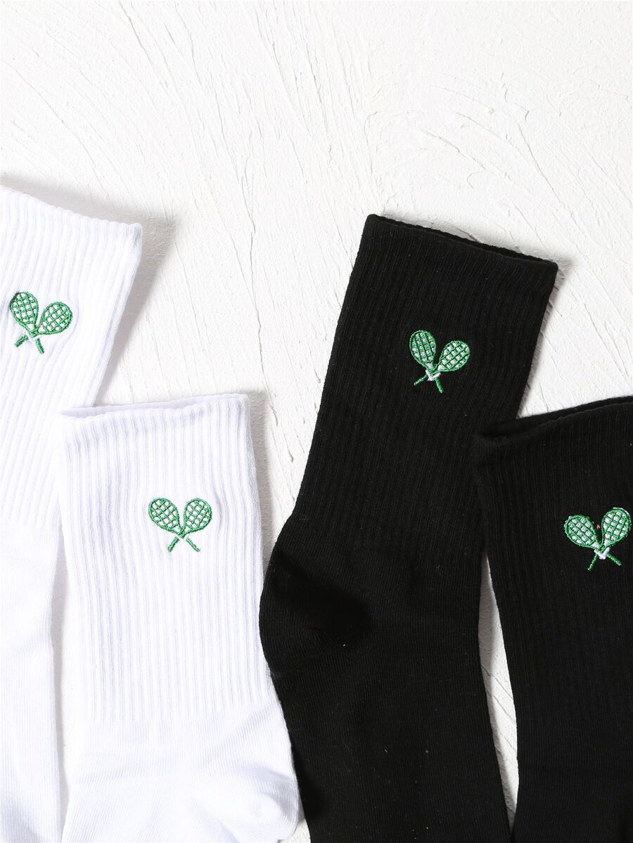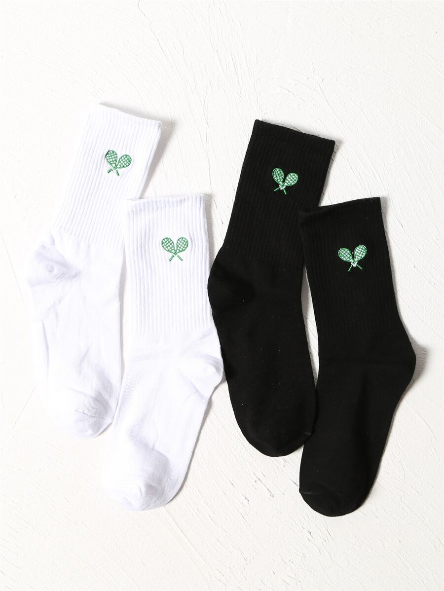 2pairs Tennis Racket Embroidery Crew Socks