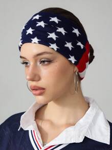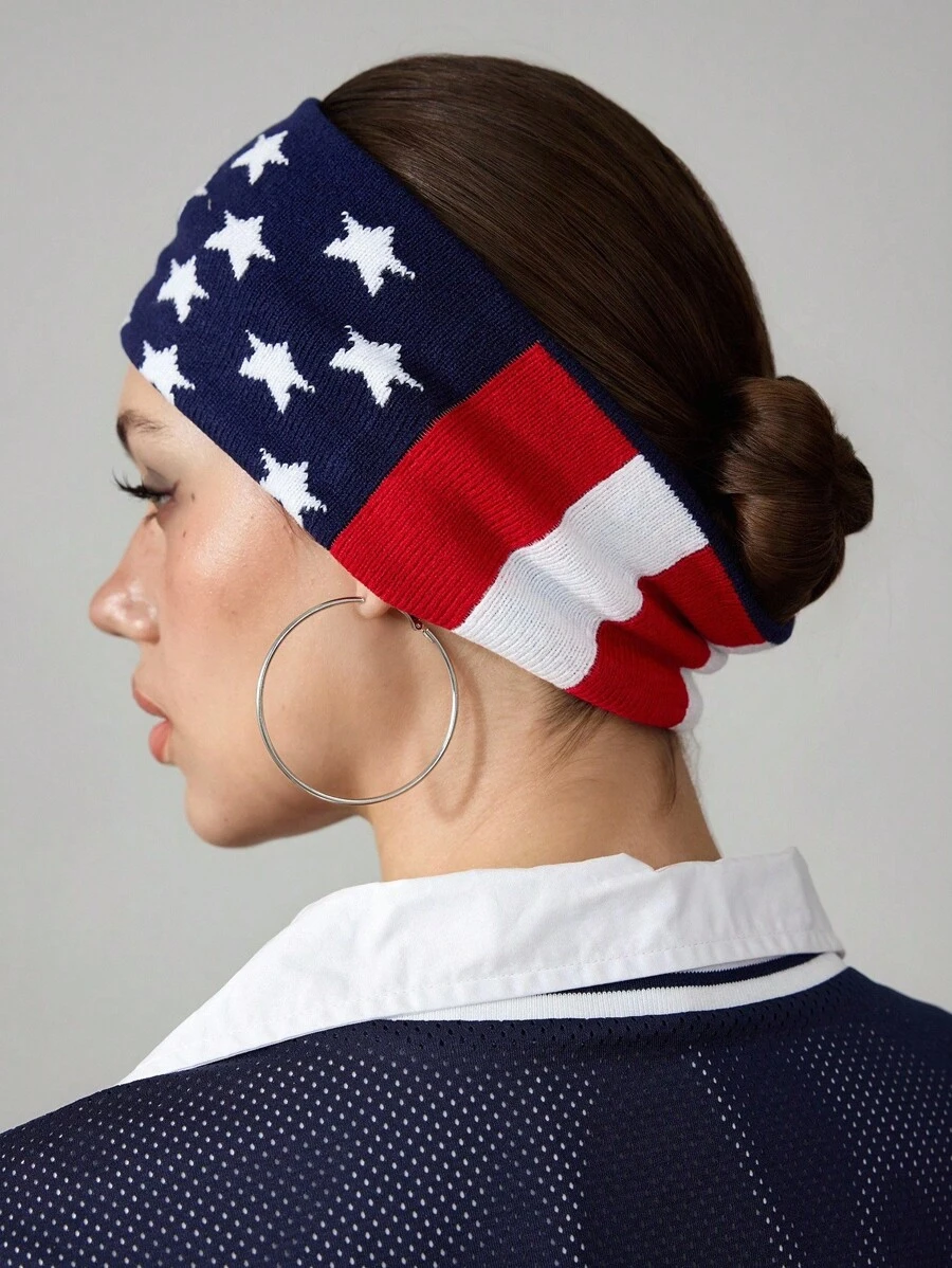 Grunge Punk 2pcs American Flag Print Knitted Wide Headband, Suitable For Girls, Fitness, Sports, Street Dance, Music Festivals