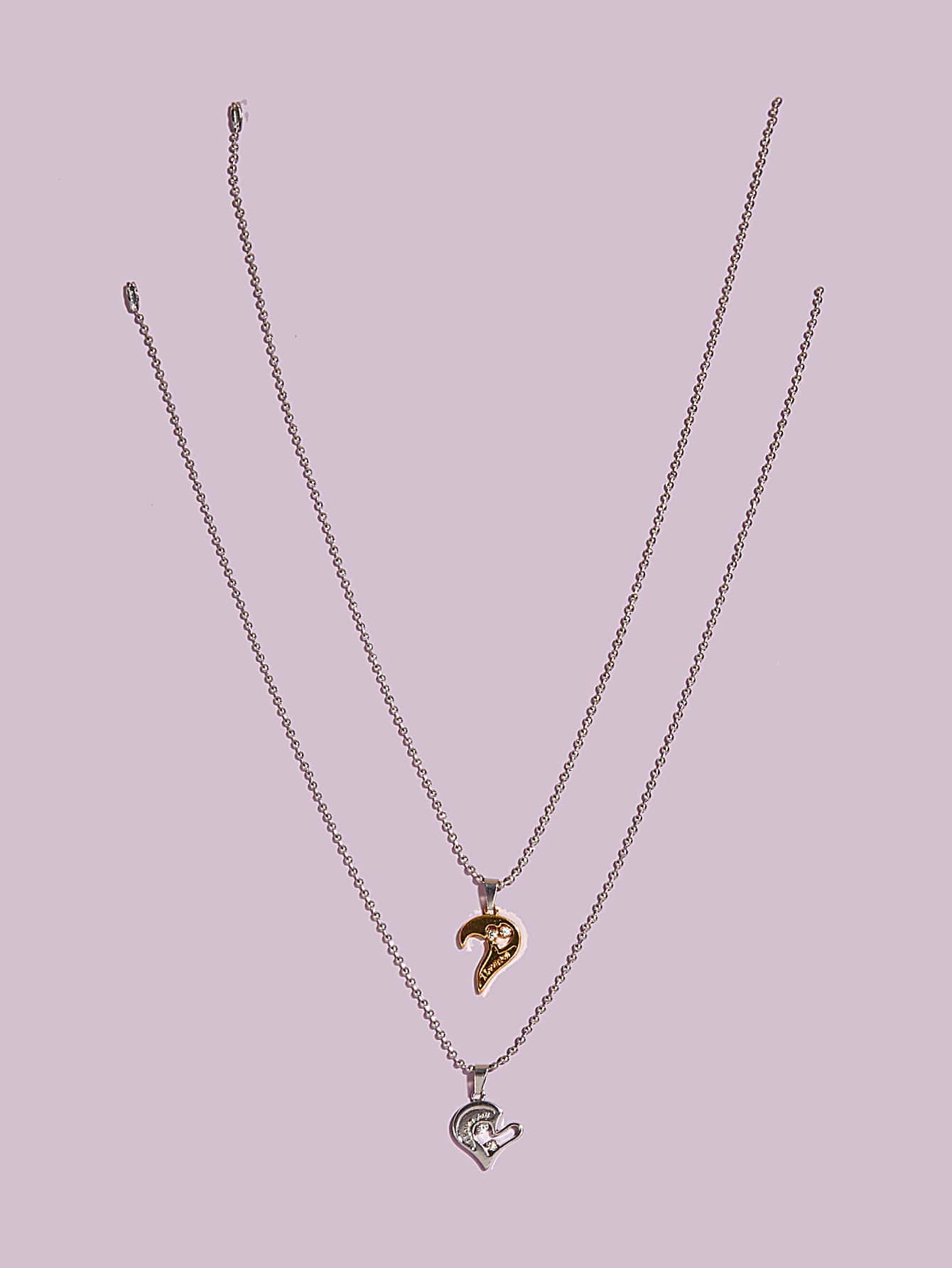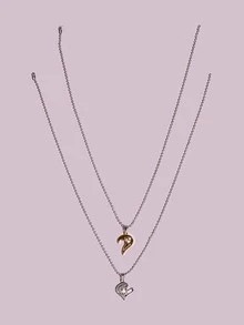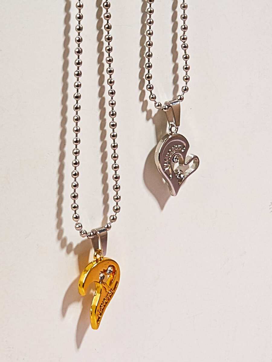 2pcs Couple Rhinestone Decor Heart Charm Necklace