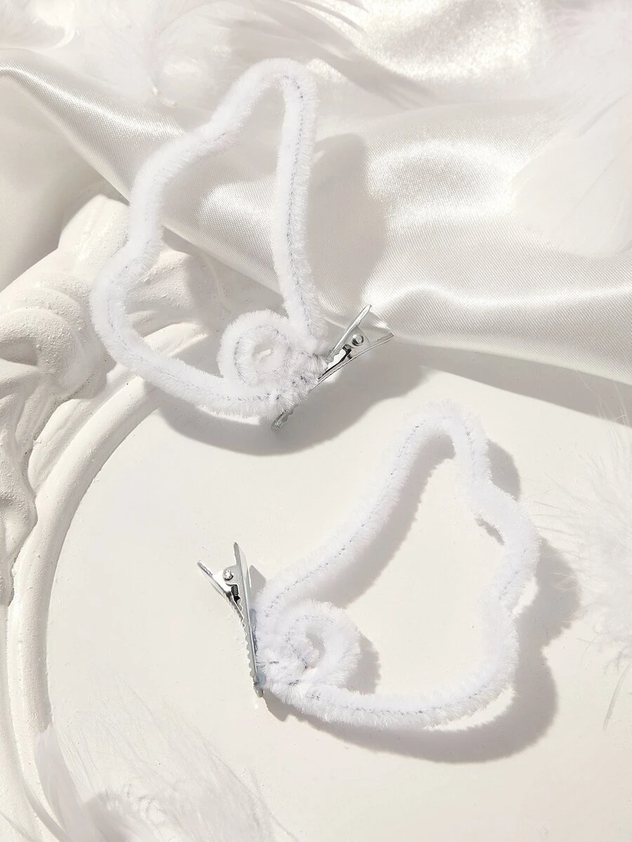 Sweetness 2pcs Fuzzy Wing Decor Alligator Hair Clip