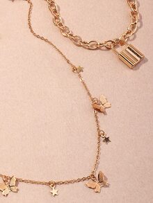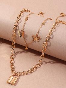 2pcs Lock & Butterfly Decor Chain Necklace