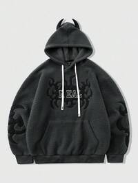 Street Life Men's Hooded Sweatshirt With Applique Pattern Fleece Sherpa Hoodie