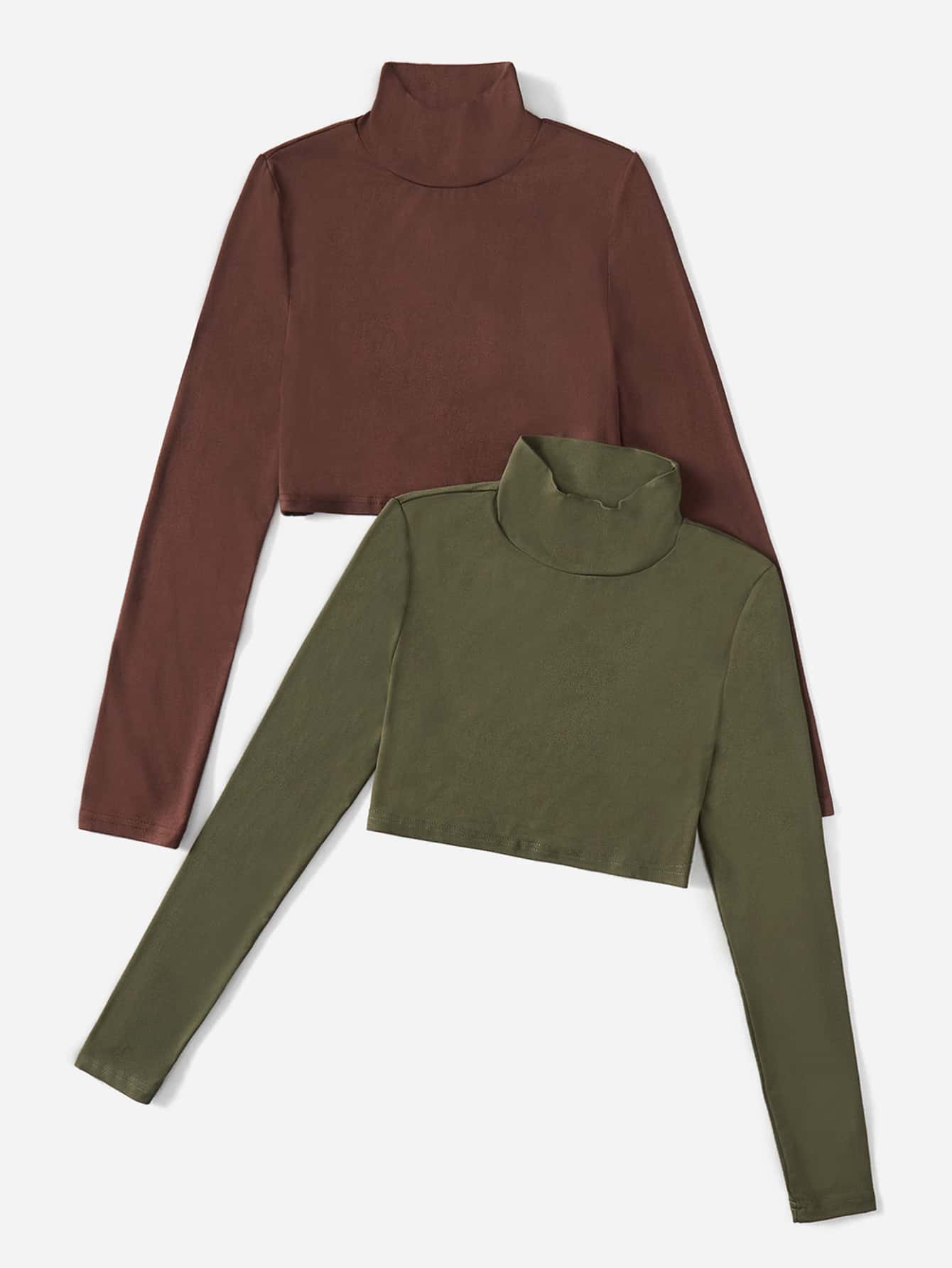 2pcs Solid High Neck Crop Tee