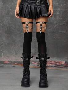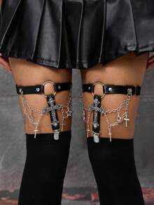 Grunge Punk 2pcs Women's Garter Belts With Black Chain, Five-Pointed Star & Hollow Cross Decor, Gothic Style Leg Garters, Versatile Accessories To Pair With Dresses & Skirts