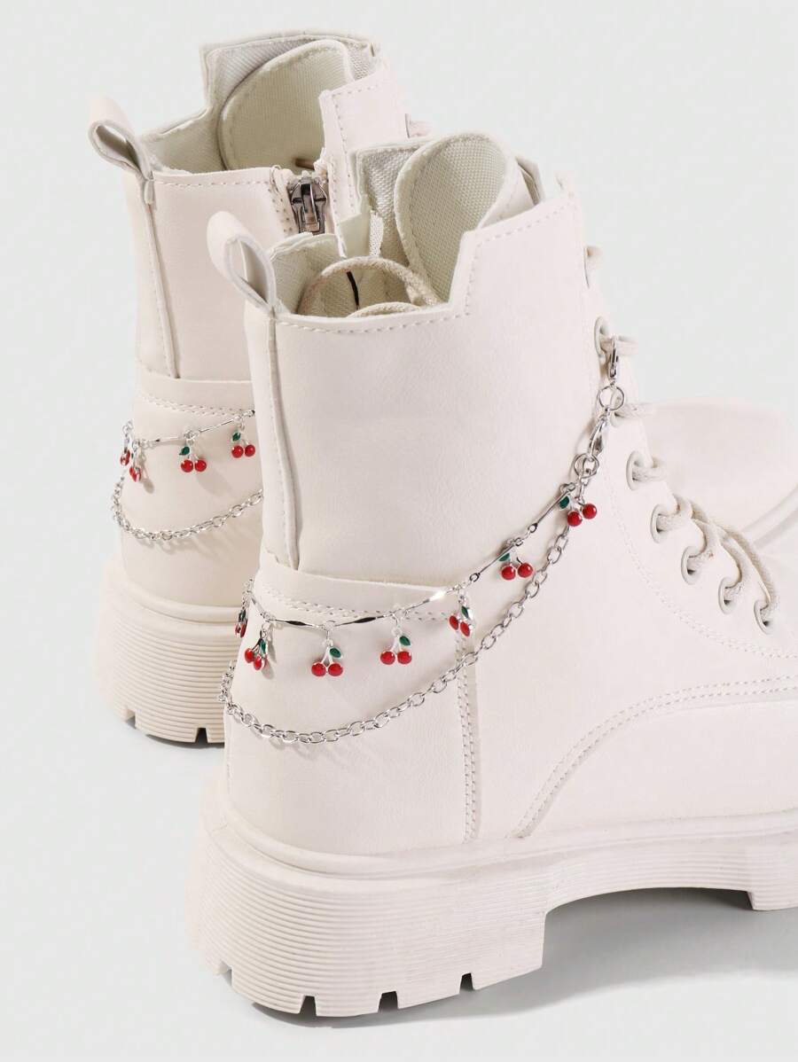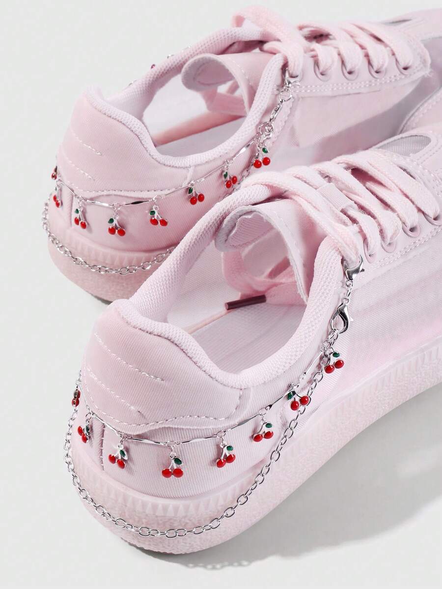 Kawaii 2pcs Y2K Chic Delicate High-End Silver Multi-Layer Chain Faux Oil Drop Cherry Pendant Adjustable Lobster Clasp DIY Shoe Decorations, Suitable For Women Daily Match Any Shoes, Holiday Gift
