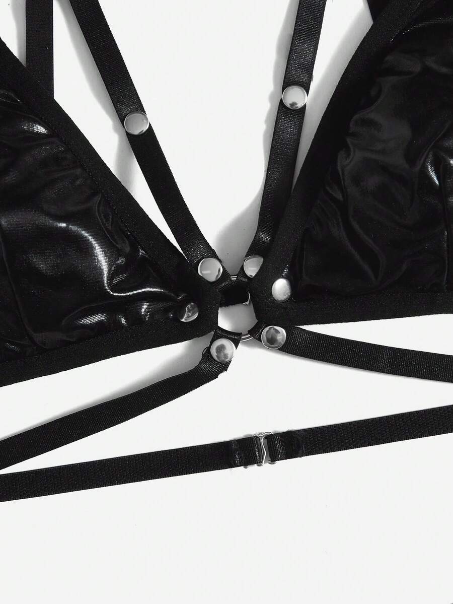3-Piece Punk Gothic College Bralette, Thong Panties, And Mini Skirt Set