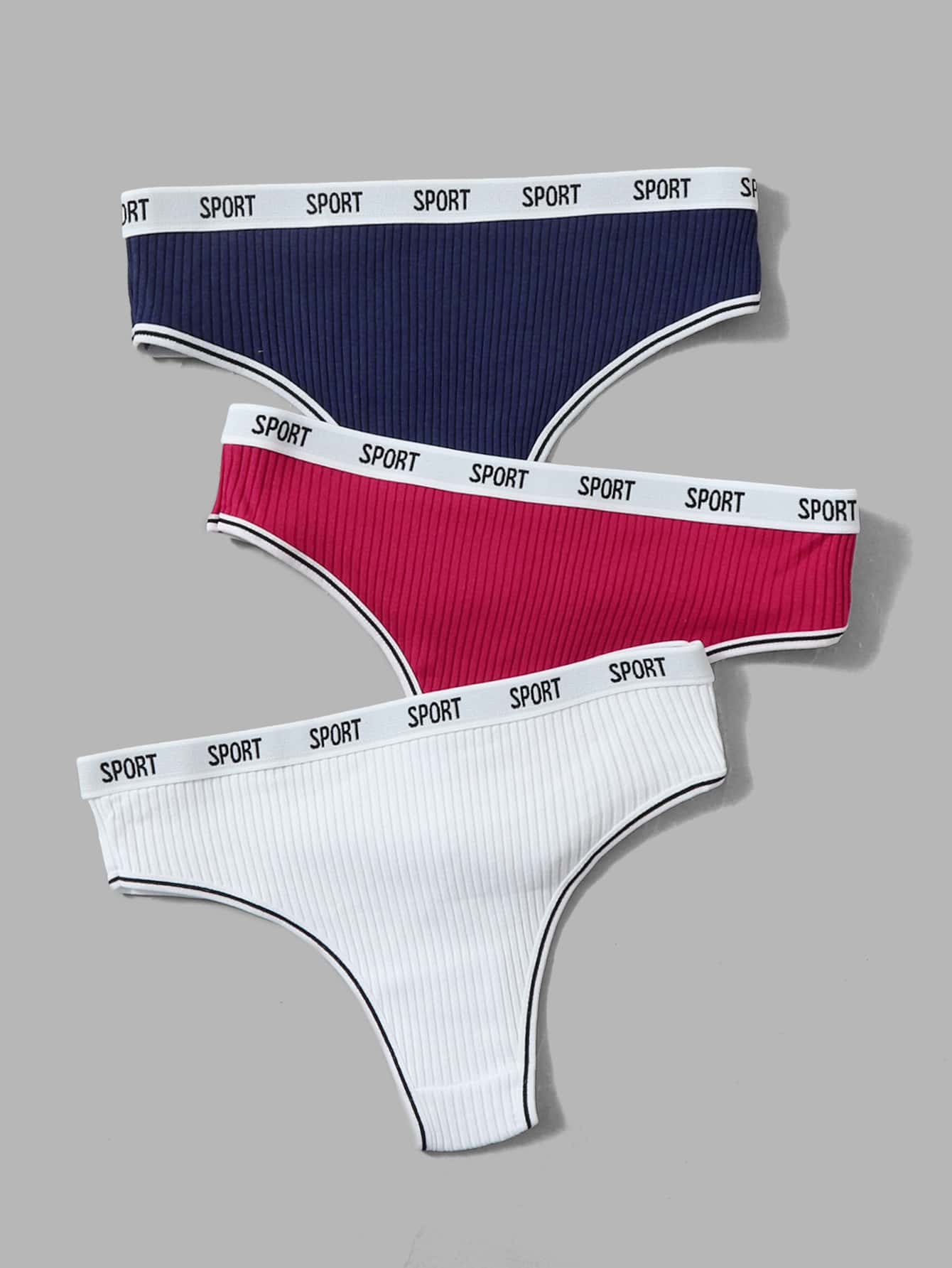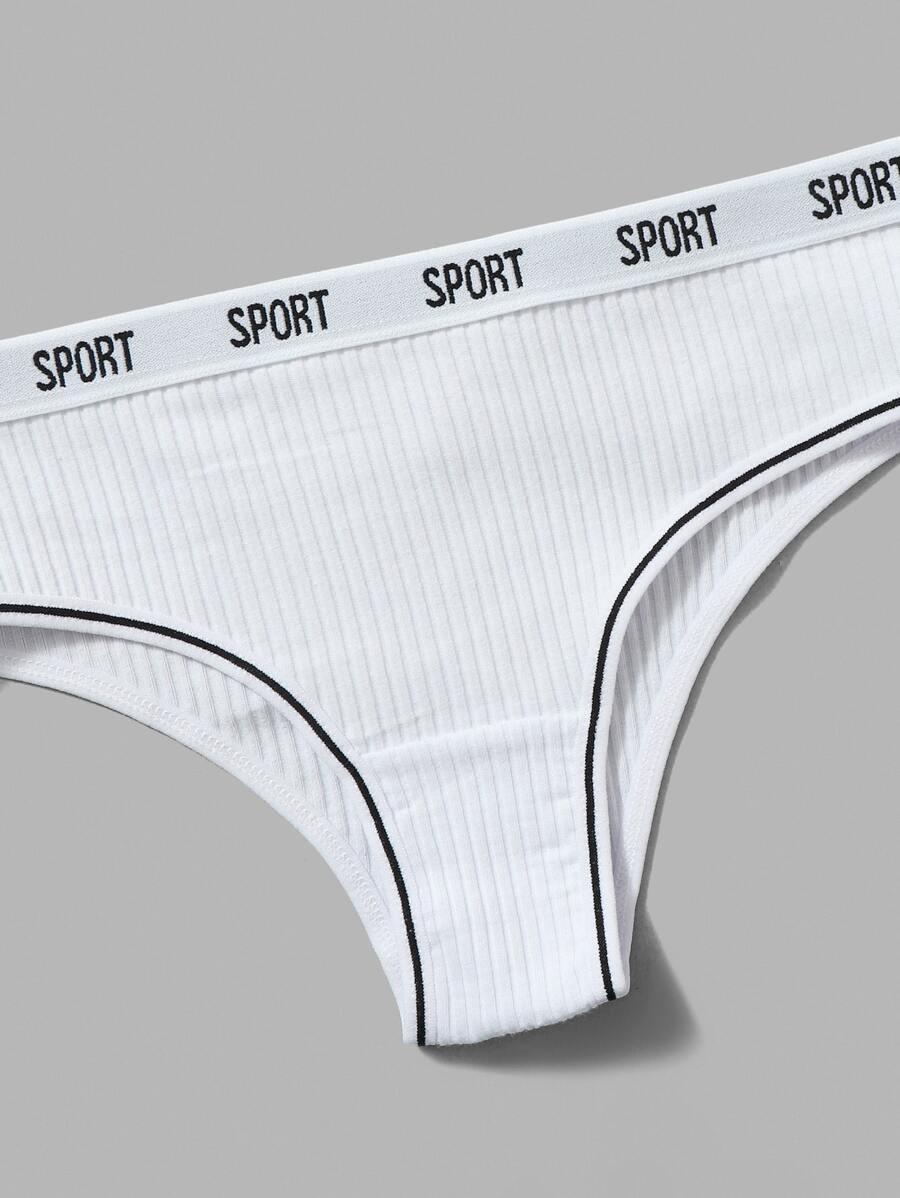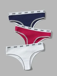 3pack Letter Tape Ribbed Panty