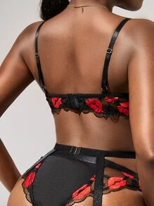 3pack Mouth Embroidered Mesh Garter Lingerie Set