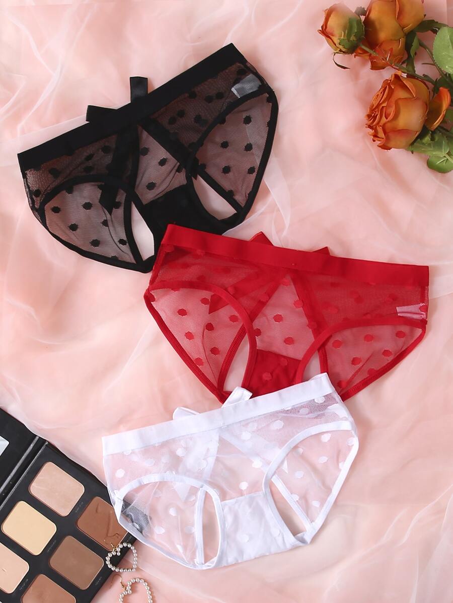 3pack Polka Dot Sheer Mesh Panty Set