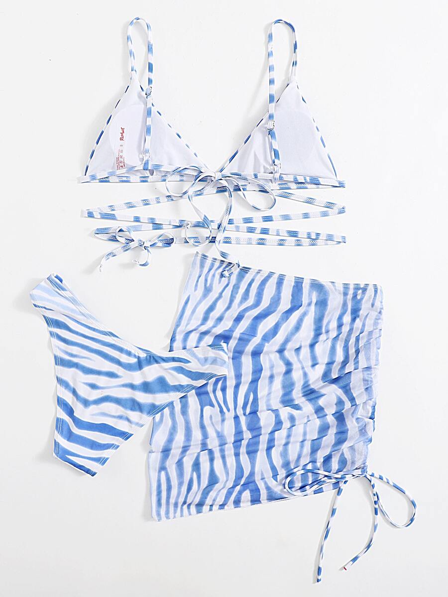 3packs Zebra Stripe Bikini Set With Beach Skirt