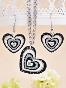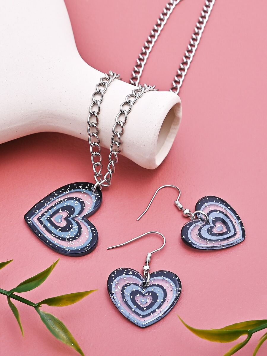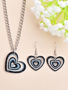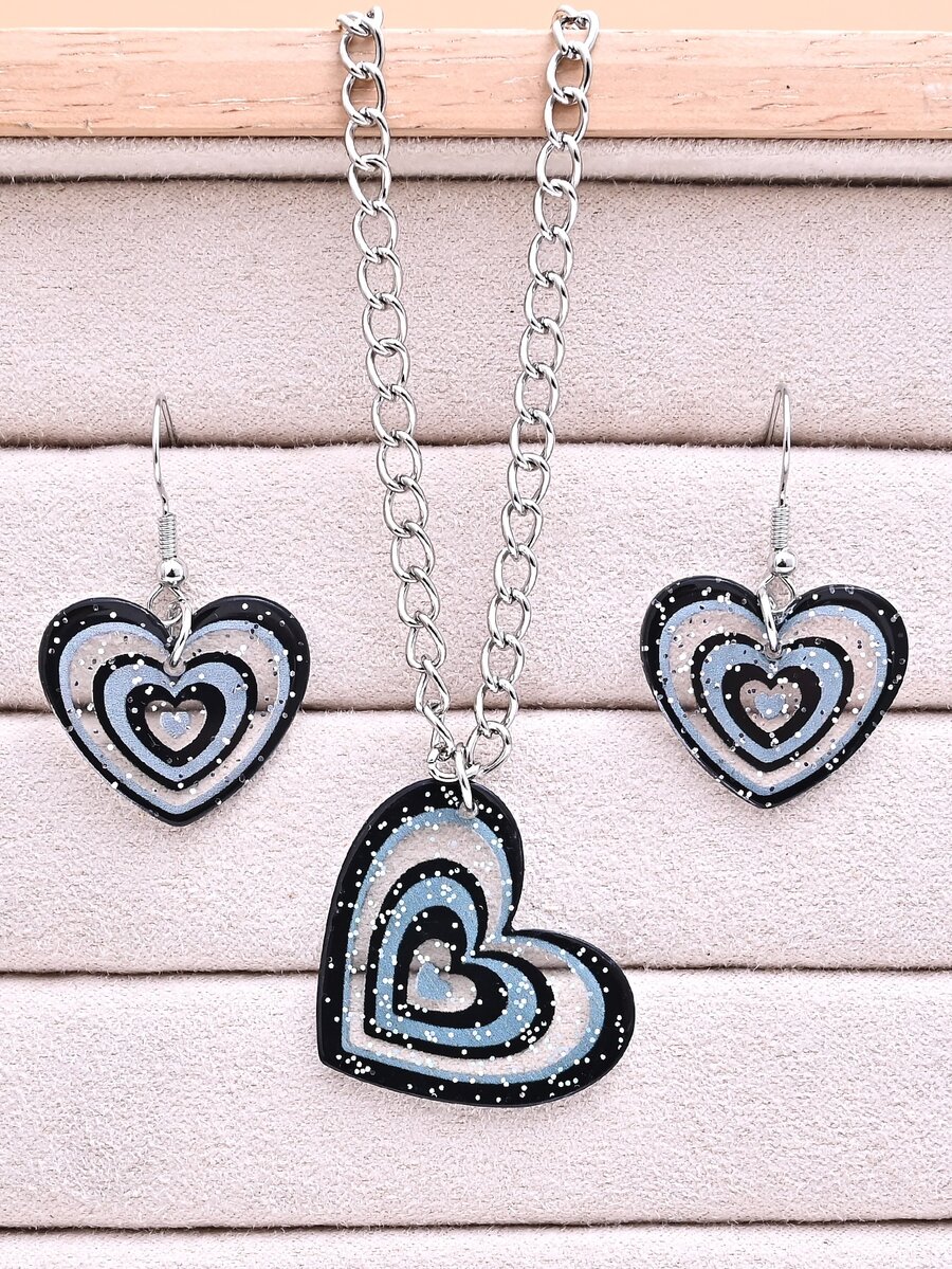 3pcs Heart & Sequin Decor Jewelry Set