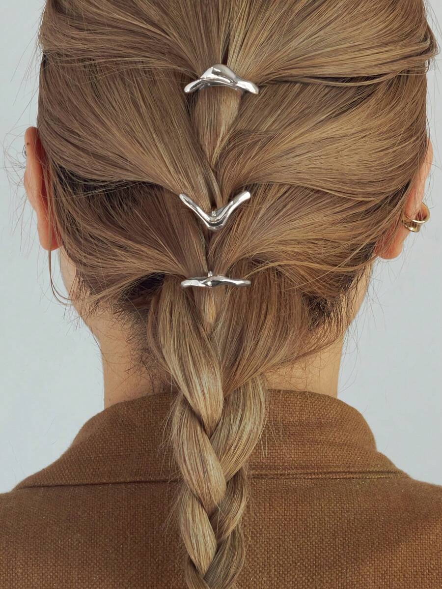 3pcs/Set Ladies Fashionable Ponytail Holder Hair Clips In Antique Gold Elegant