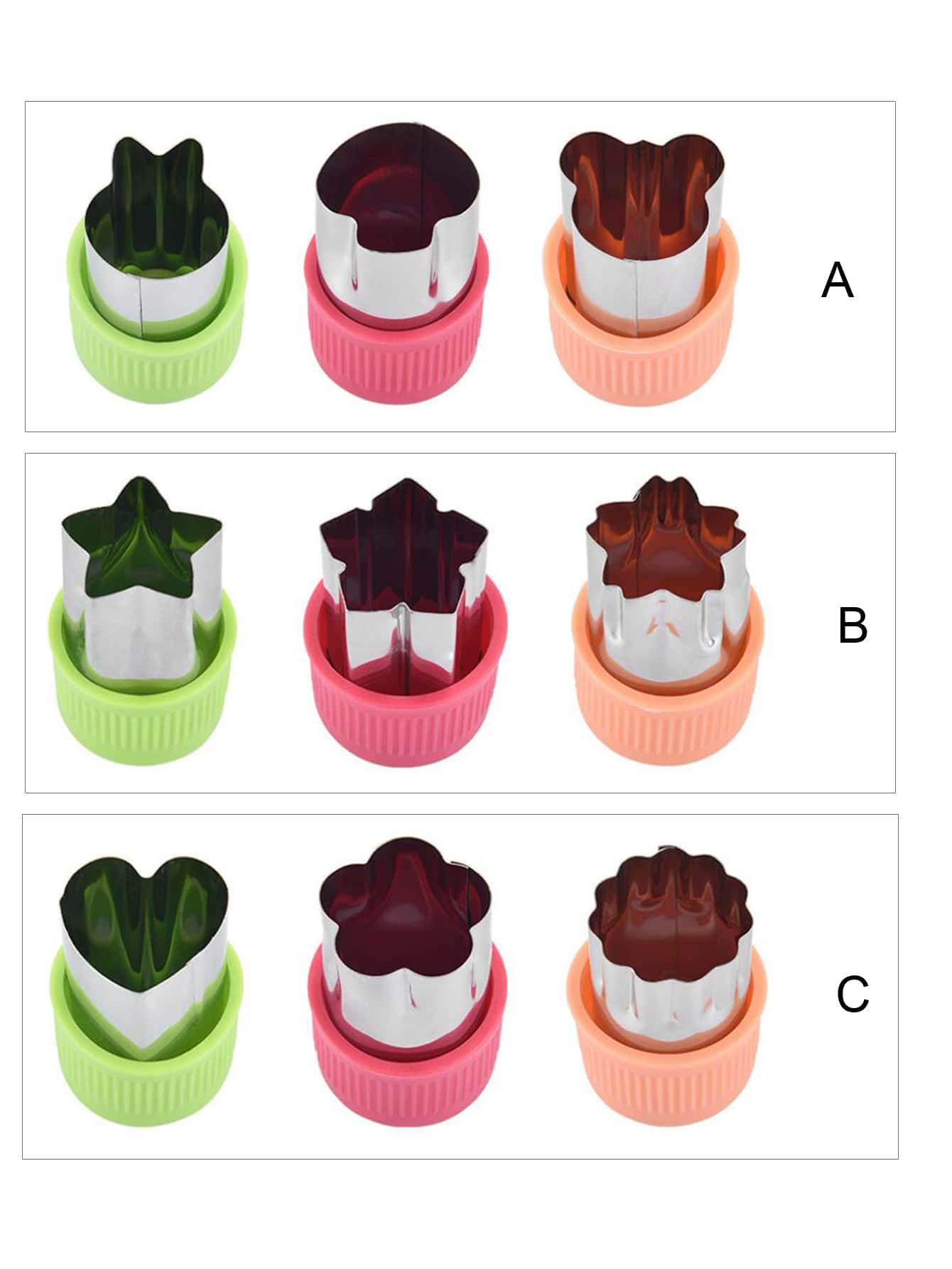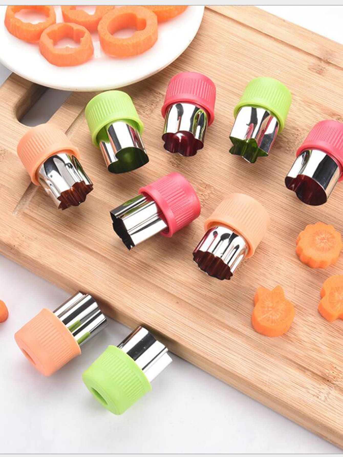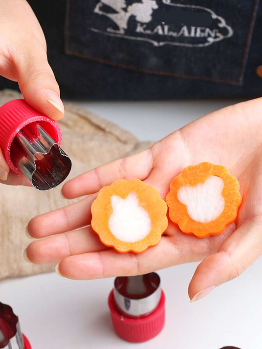 3pcs/set Random Color Vegetable Cut Mold, Stainless Steel Creative Cute Carrot Cutter, For Cooking Kids Food