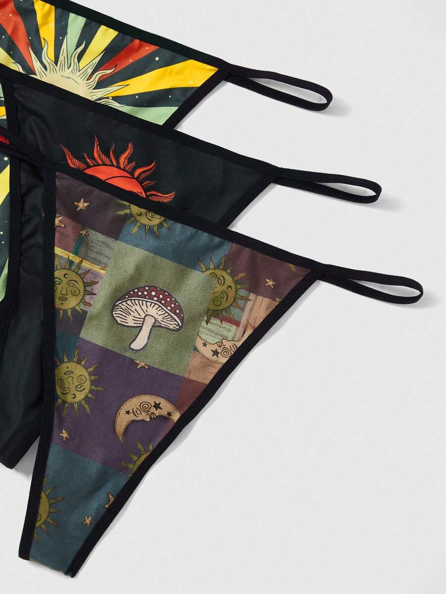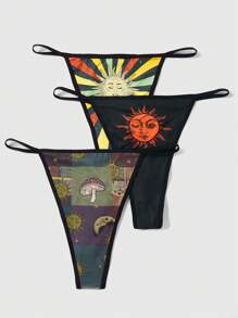 Nillolent 3pcs Plus Size Sun Print Underwear