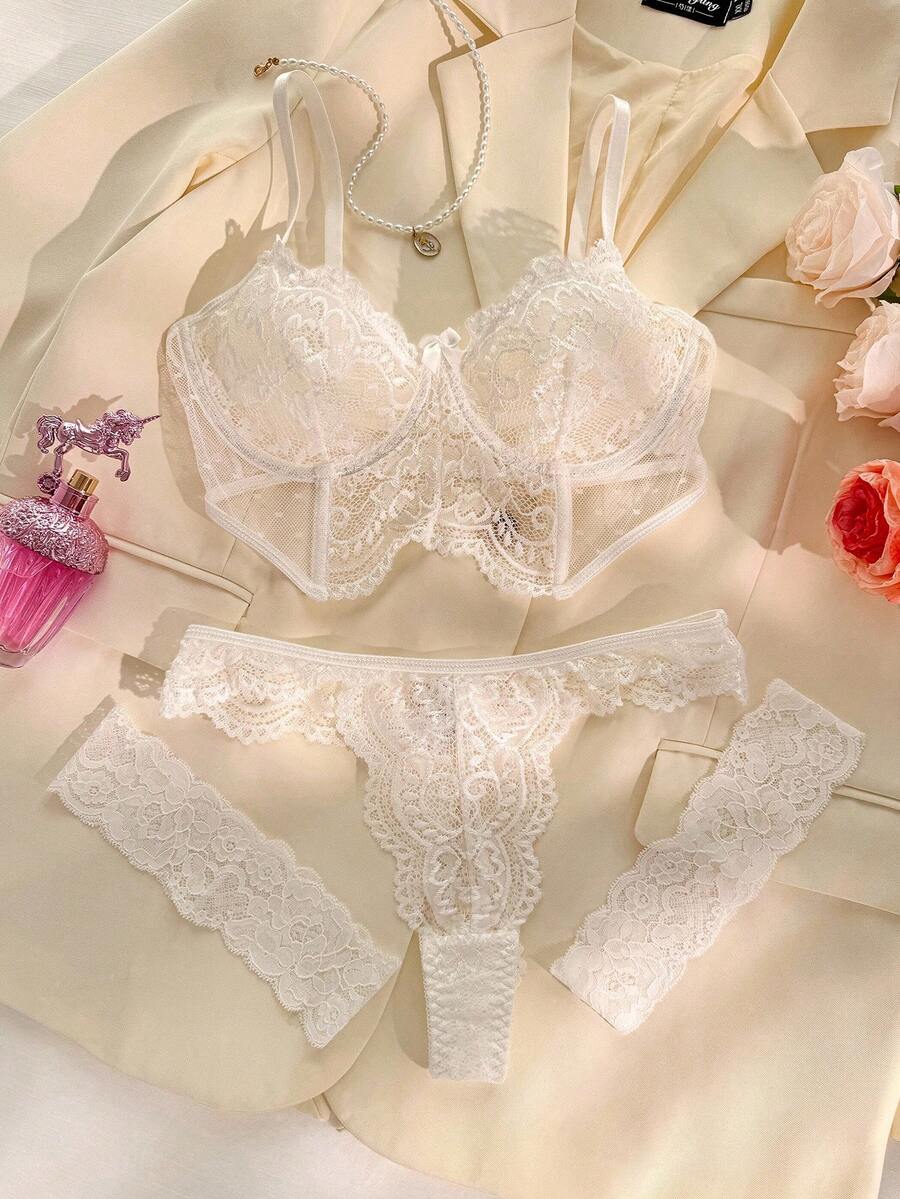 4pack Floral Lace Underwire Lingerie Set & Leg Rings Bridallingerie