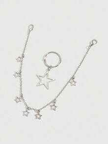 Grunge Punk 4pcs Punk Style Pentagram Chain Shoe Decorations, Autumn/Winter Boots & Shoes Star Chain Decor