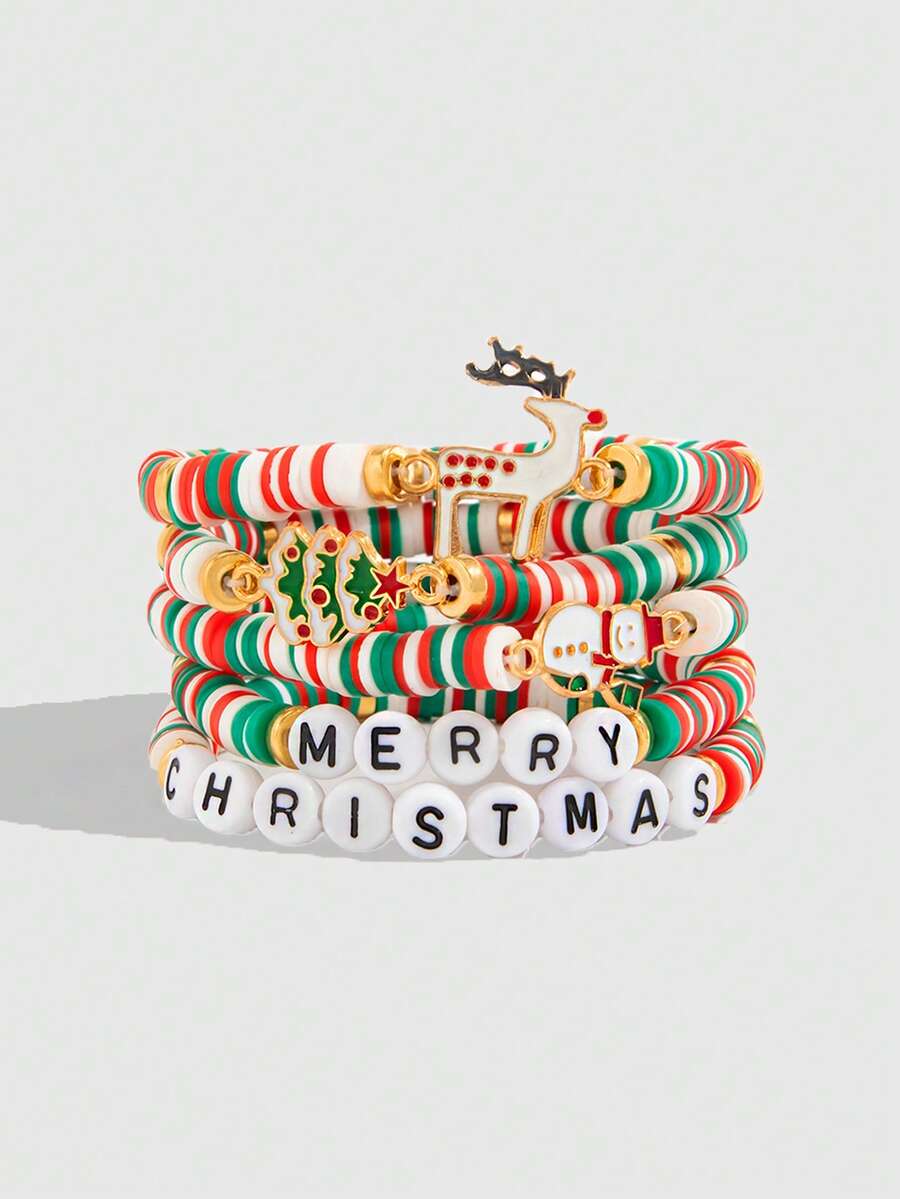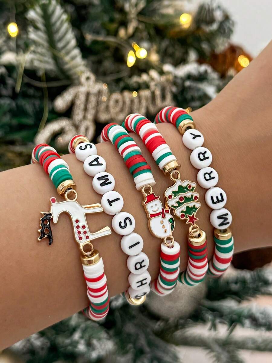 Kawaii 5pcs Fashionable Strawberry Pendant Crystal Beaded Bracelet Set, Sweet & Lovely For Women, Great For Friends And Valentine's Day Gifts,Mom,Mother,Mother's Day,Gift
