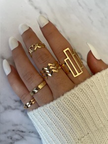 5pcs/Set Heart Wave Asymmetrical Simple Metallic Ring Set