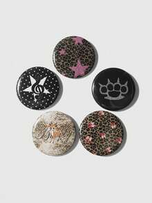 5pcs Y2K Retro Edgy Chic Fashion High-Quality Dark Goth Style Badges: Brown/Black&White/Purple Leopard Print, Deer Print, Cartoon Deer, Star, Cherry, Polka Dot, Music Note, Bear Paw, Cat Paw, Silver Brooch Pins Combo Set, Suitable For Sisters, Best Friends, Women, Daily Wear, Holiday Gifts
