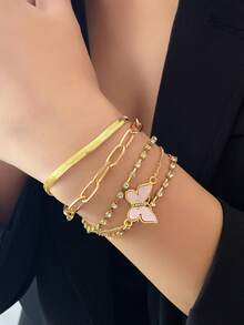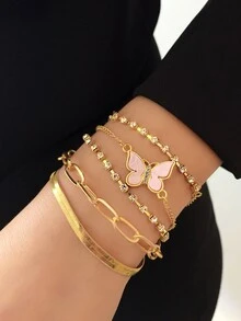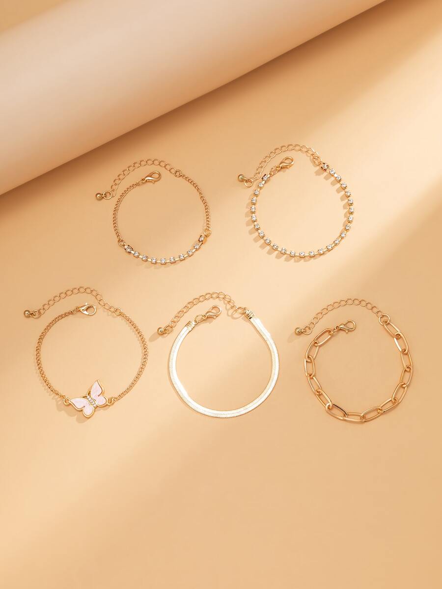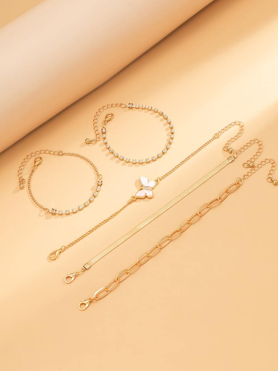 5pcs/set Rhinestone & Butterfly Decor Bracelet