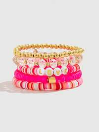 Kawaii 5pcs Sweet & Cute Letter Beaded Soft Clay Bracelet Set, Suitable For Daily Wear, Best Gift For Friends And Lovers On Valentine's Day