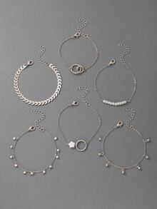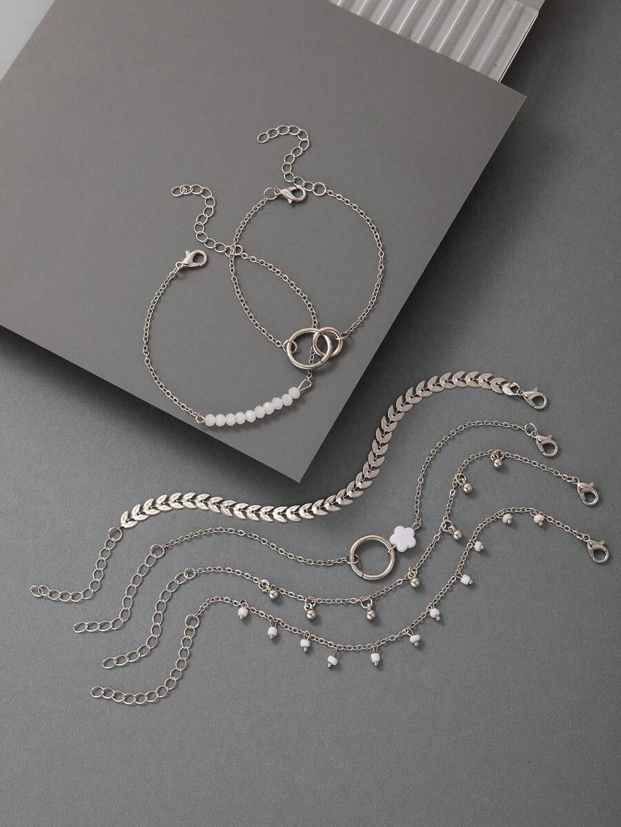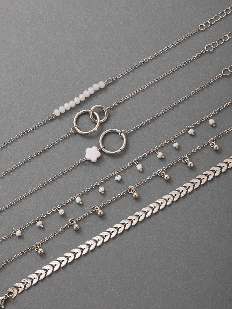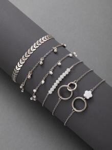 6pcs/set Fashion Zinc Alloy Flower & Bead Decor Bracelet For Women For Daily Decoration