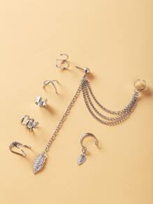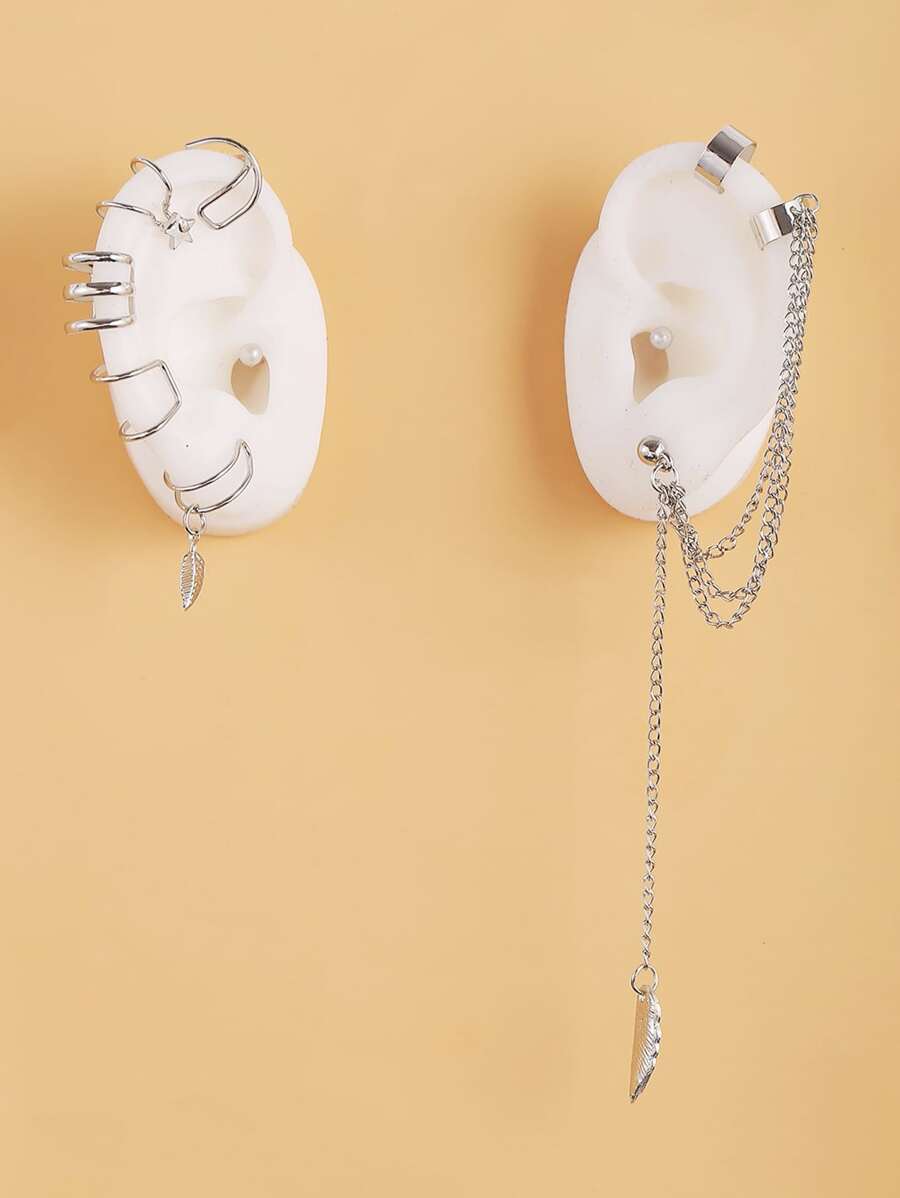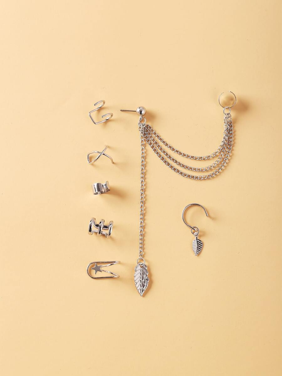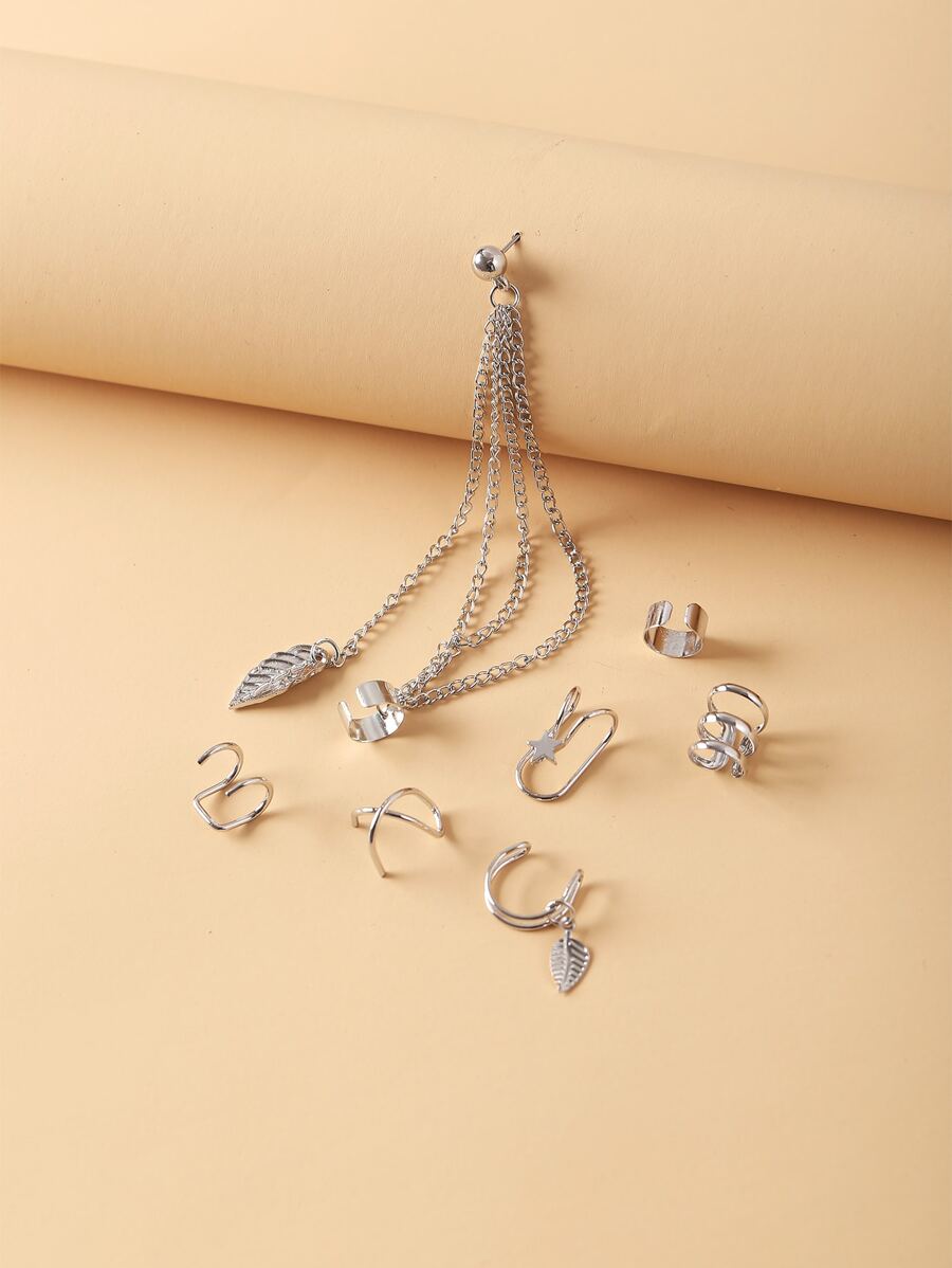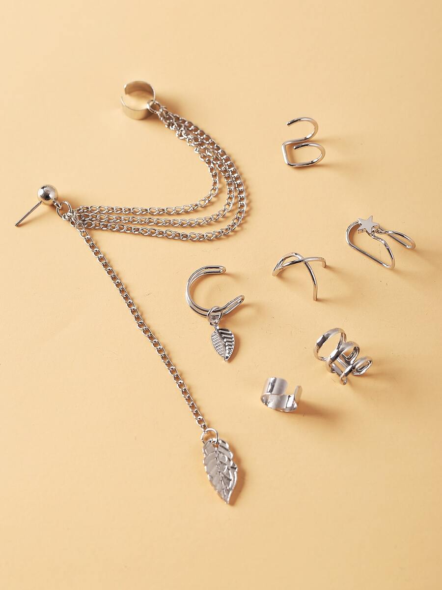 7pcs Leaf & Chain Decor Ear Cuff