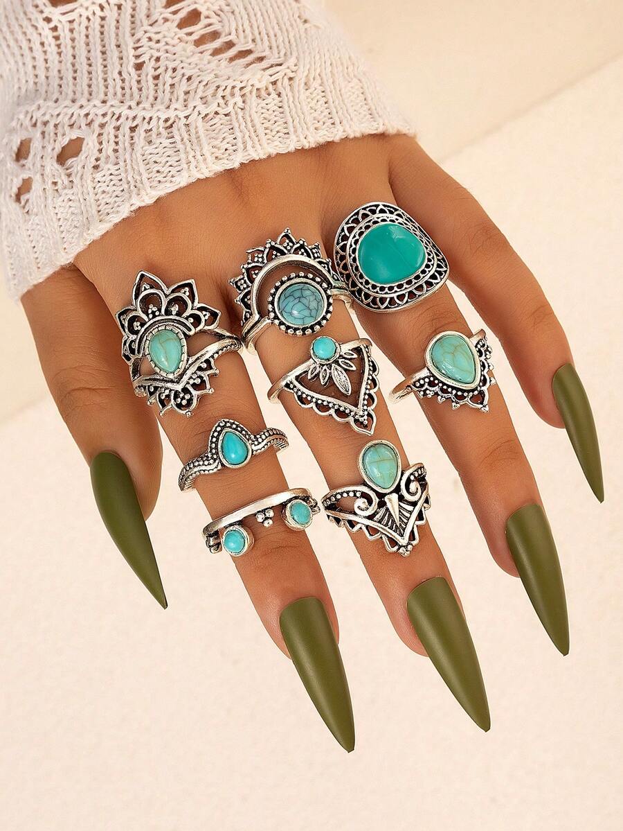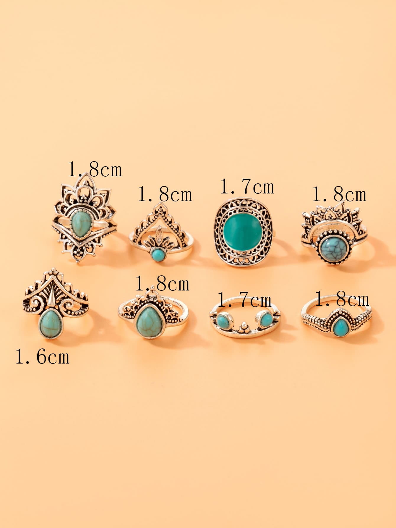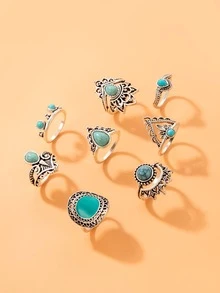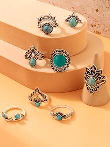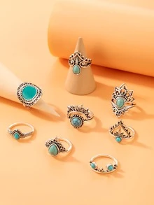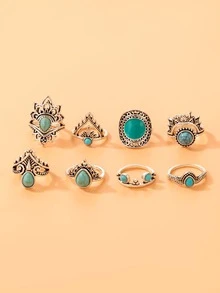 8pcs/set Turquoise Decor Ring