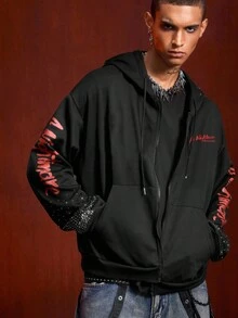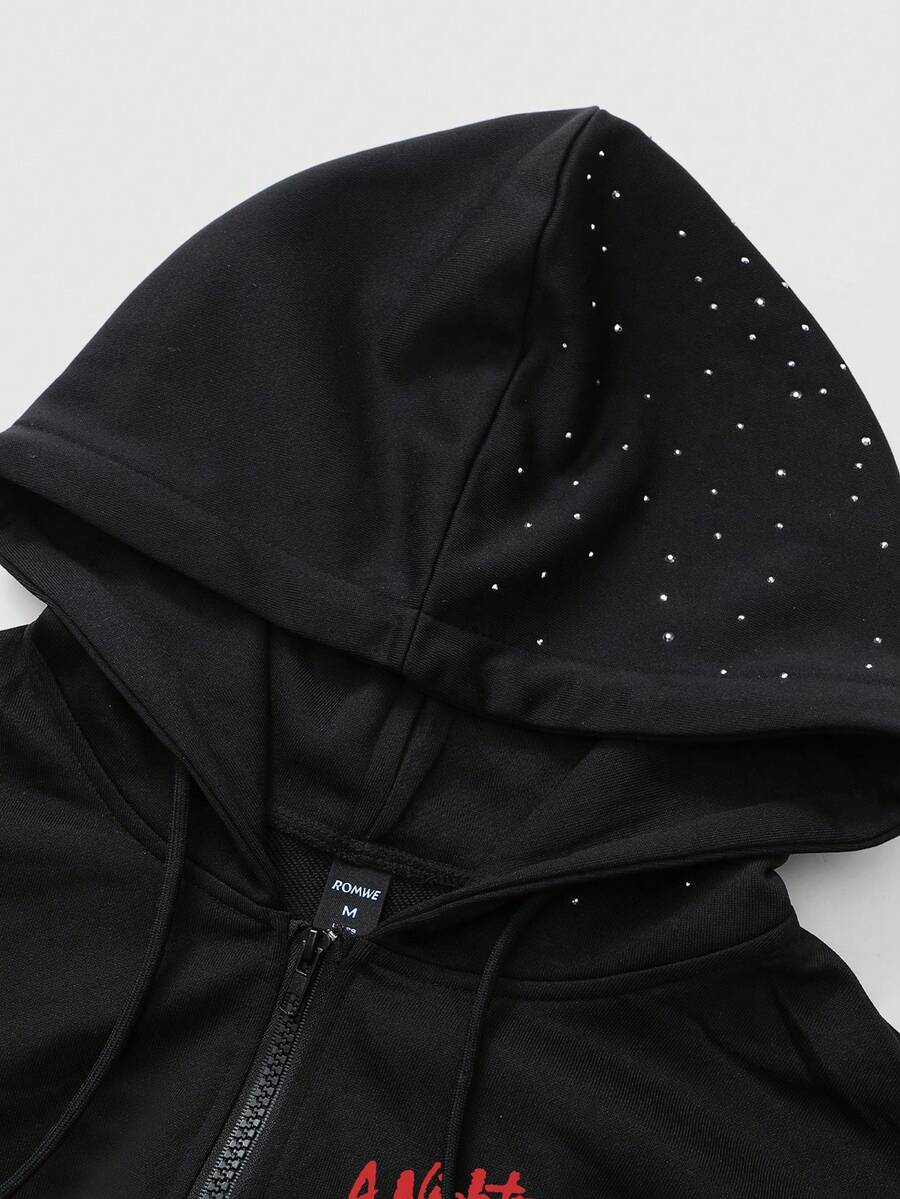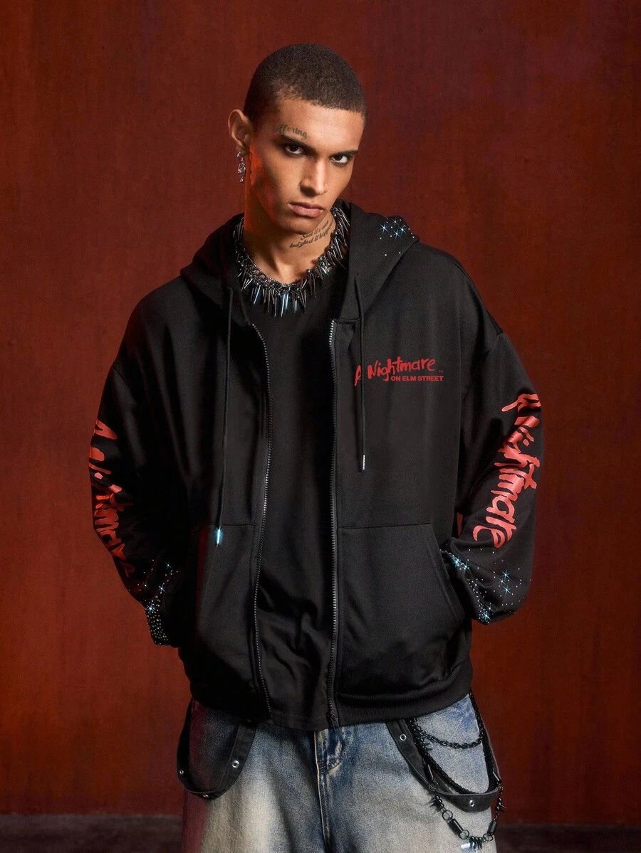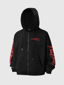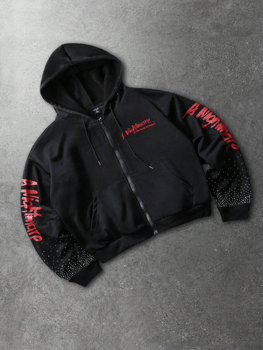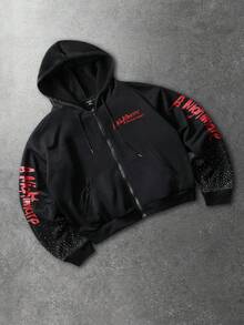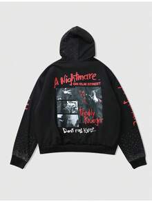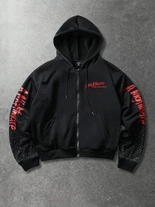 A Nightmare on Elm Street X ROMWE Men Letter Graphic Rhinestone Embellished Sweatshirt, Suitable For Autumn/Winter