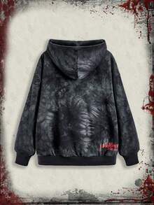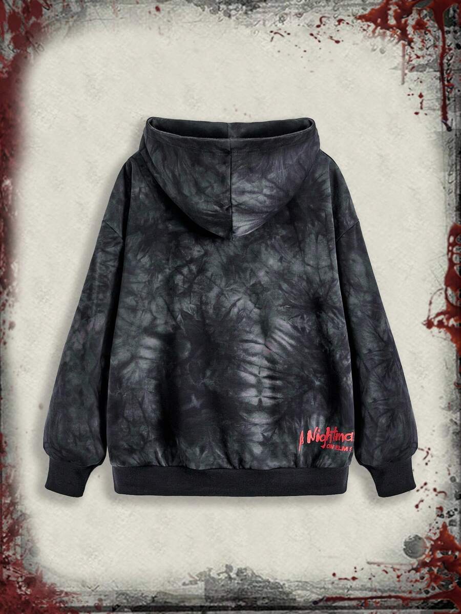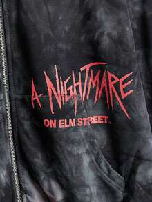 A Nightmare on Elm Street X ROMWE Women's Casual Tie-Dye Letter & Skull Print Zip-Up Hoodie Sweatshirt, Autumn