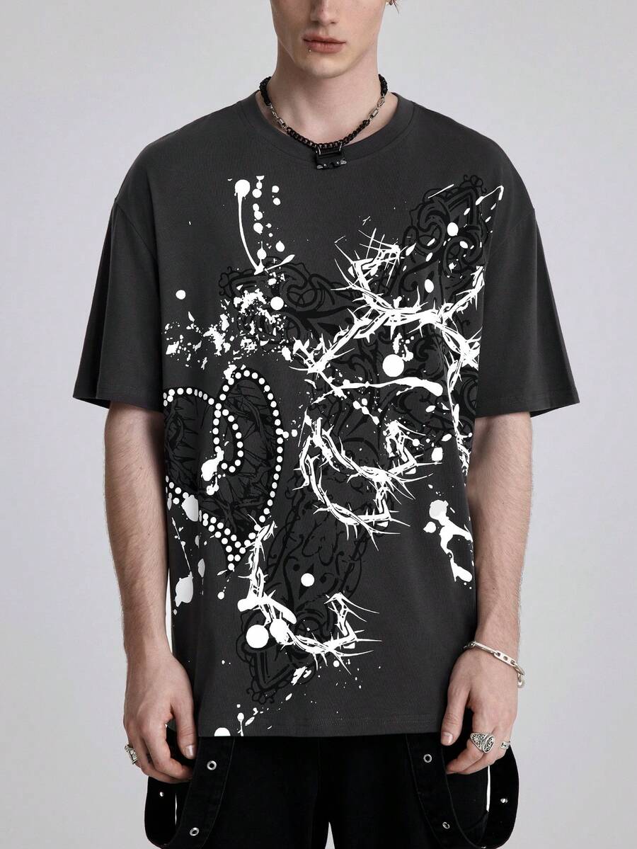 Academia Men's Summer Casual Round Neck Short Sleeve T-Shirt With Ink Splatter Print