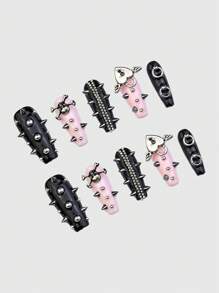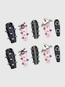 Anime 10pcs Y2K Factory Made Angel Heart Skull Rivet Steel Beads Piercing Rings Chain False Nails And 1pc Tape