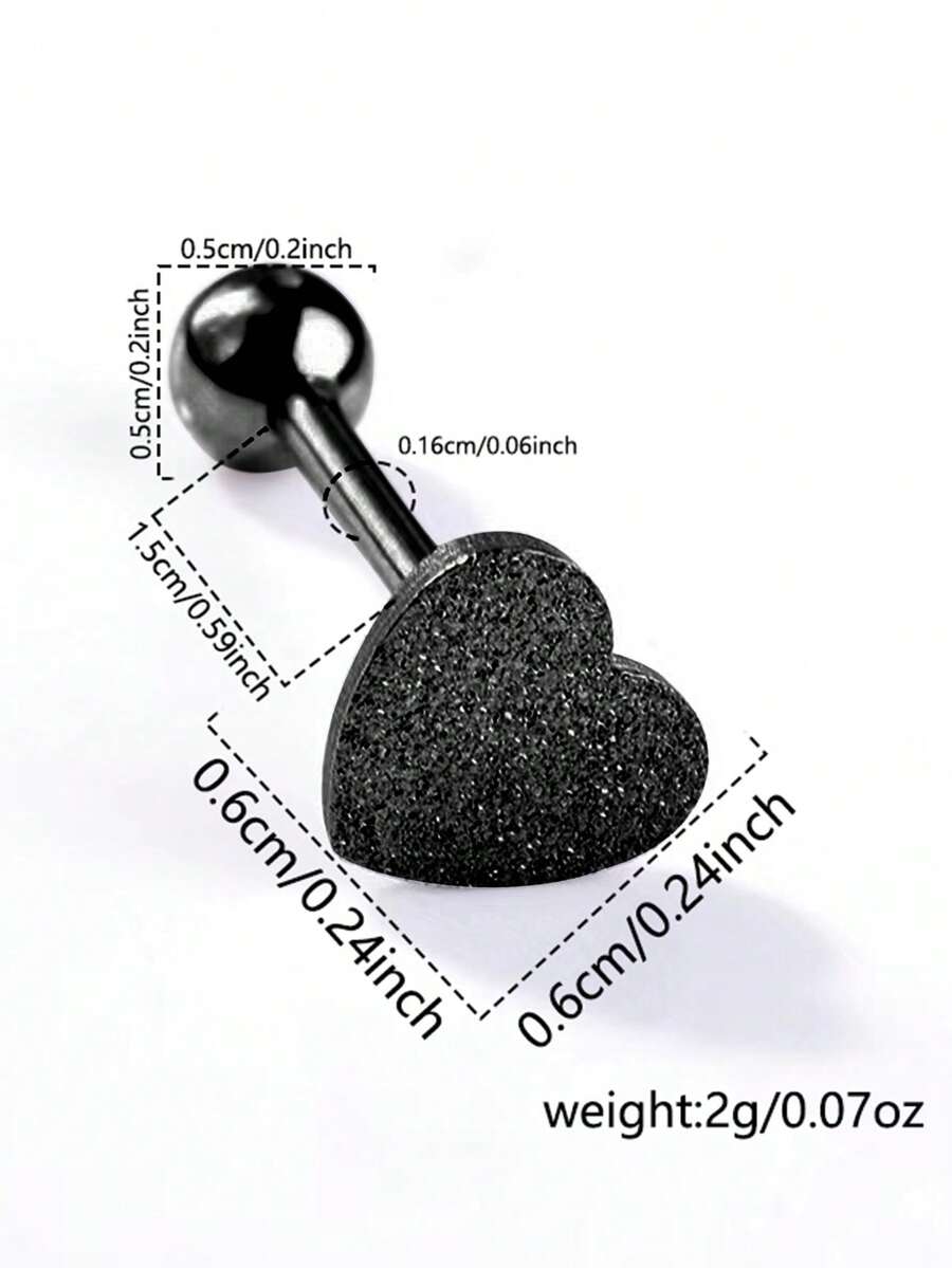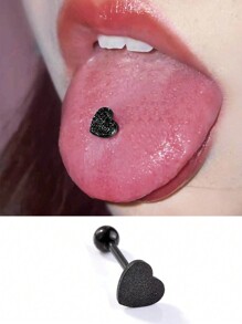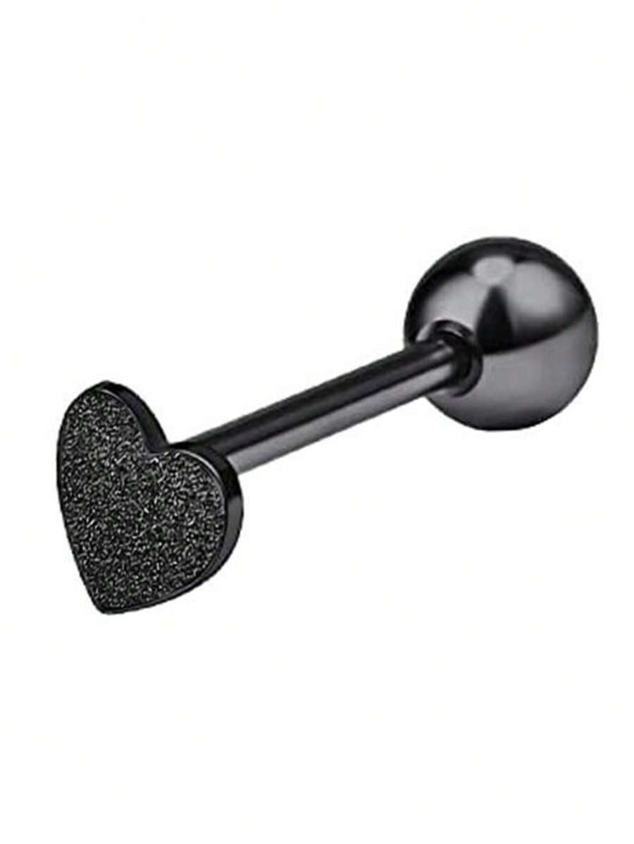Anime 1pc Black Stainless Steel Matte Finish Tongue Ring With Ball, Heart & Love Shape Unisex Body Piercing Jewelry