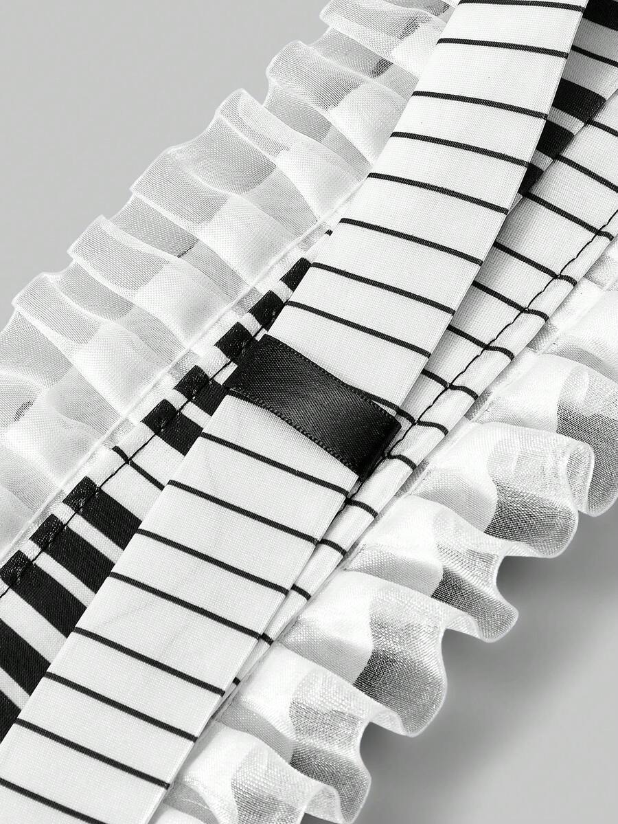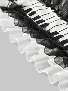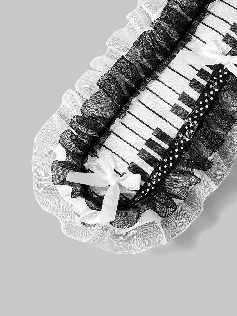 Anime 1pc Black & White Y2K Retro Lace Bow Tie With Piano Key Texture Design, Fashionable Minimalist Versatile Accessory For Women, Suitable For Daily, School, Date, Shopping, Etc.