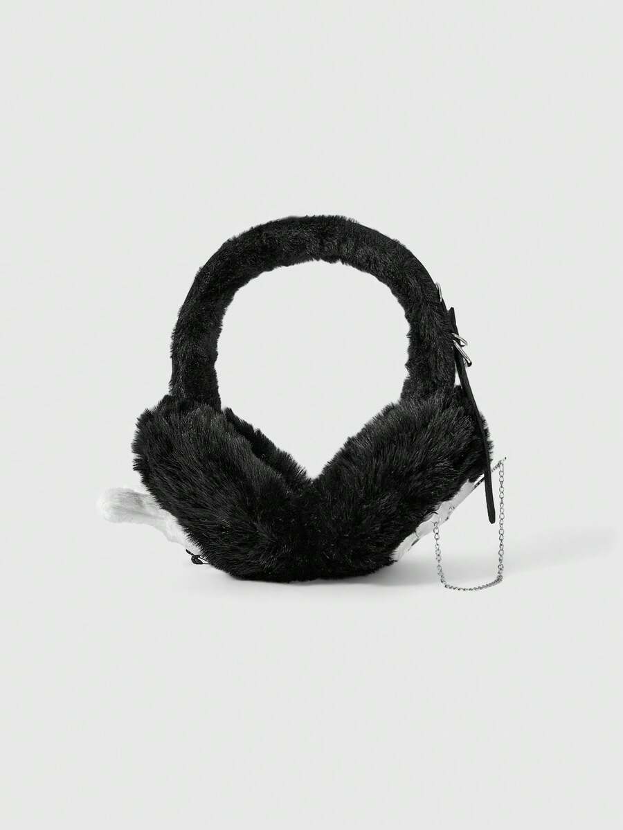 Anime 1pc Black Y2K Punk Style Metal Rivet Decor Millennium Baddie Goth Black Spider Ear Muffs, Sweet & Cool Fashionable Subculture Unisex Warm Ear Warmers