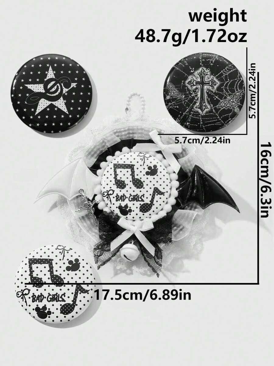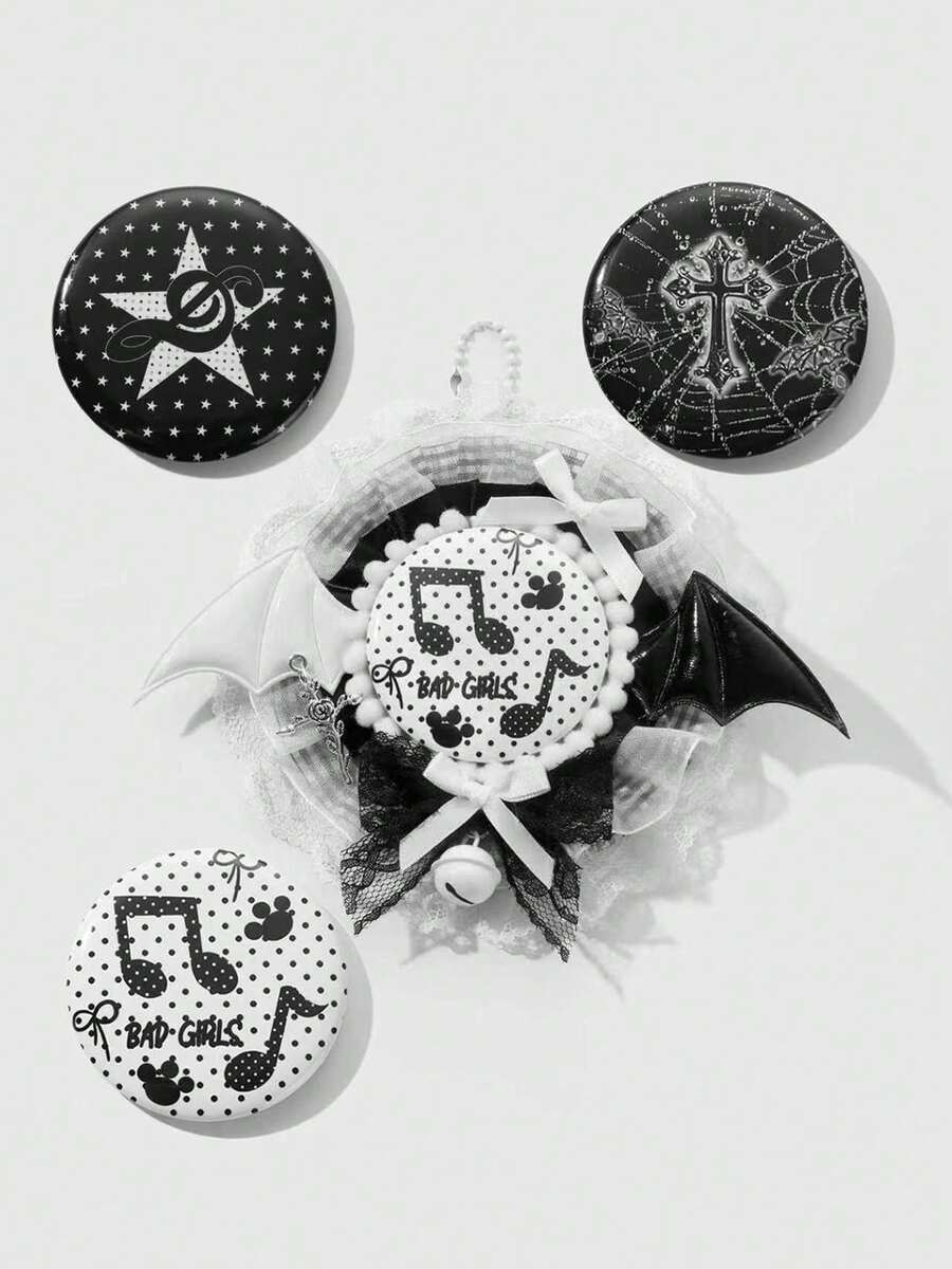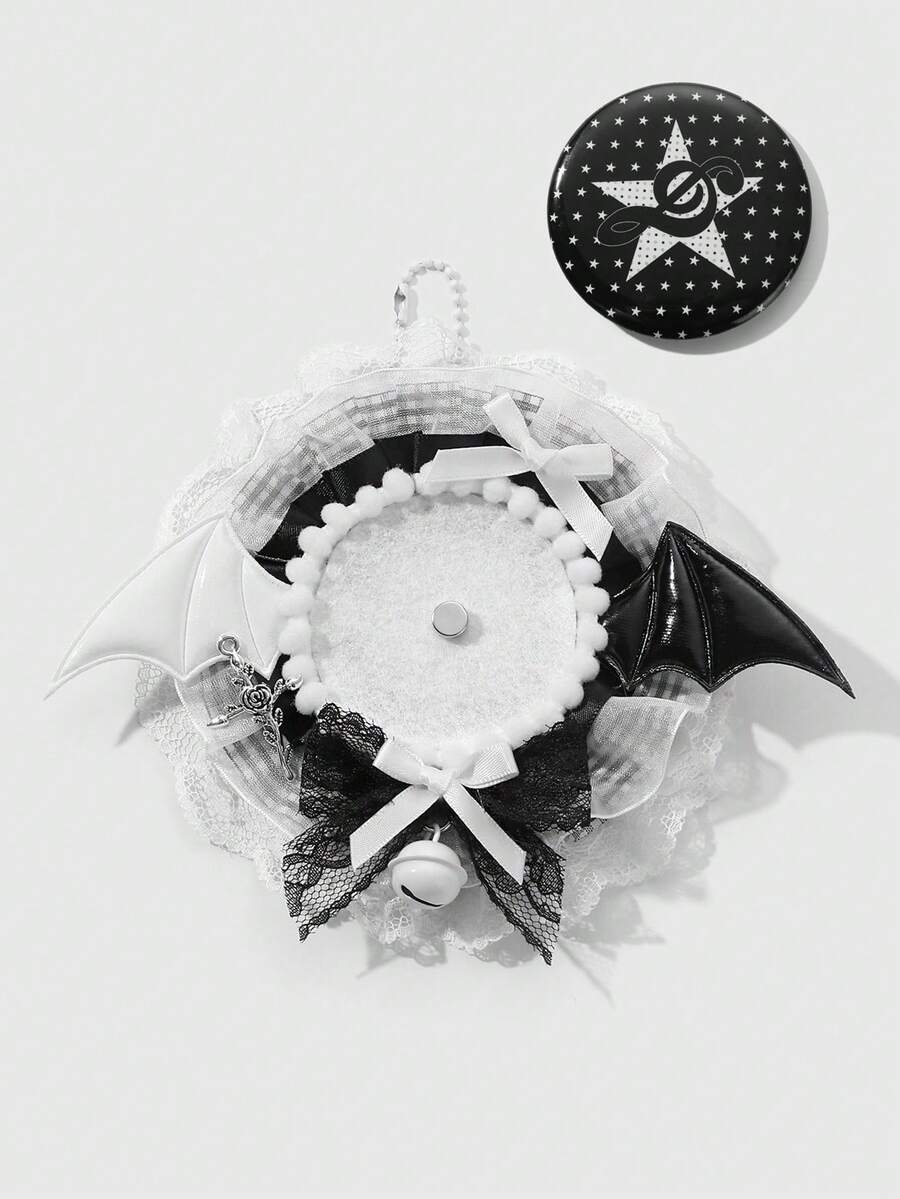 Anime 3pcs Y2K Goth Style Accessories - Vintage Fashion Lace, Flocked, Plaid, Leather, Angel/Devil Wings, Rose, Thorns, Cross, Hollow Bowknot, Small Bell, Magnetic Closure Decor For Backpack