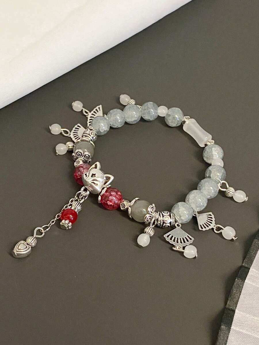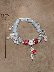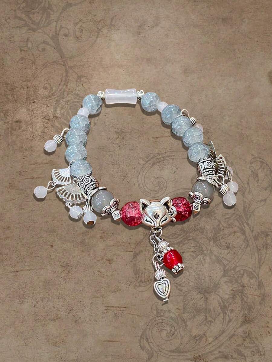 1pc Fashion Zinc Alloy Fox Decor Beaded Bracelet For Women For Dating Gift