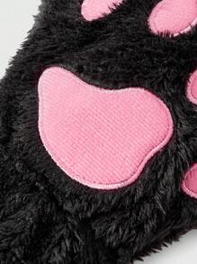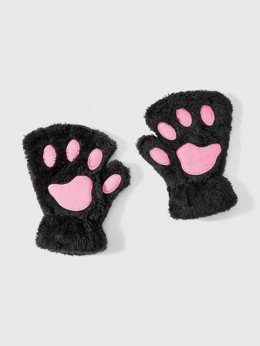 Anime Black Cute Cat Paw Fingerless Gloves, Casual Outdoor Warm Half Finger Gloves For Autumn/Winter Cosplay