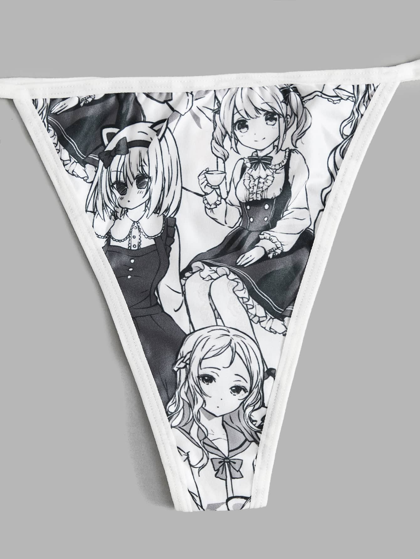 Anime Figure Graphic Halter Tie Side Lingerie Set