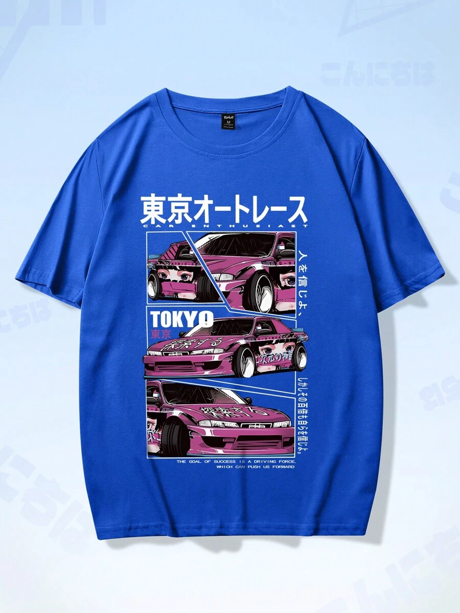 Anime Guys Car & Letter Graphic Tee