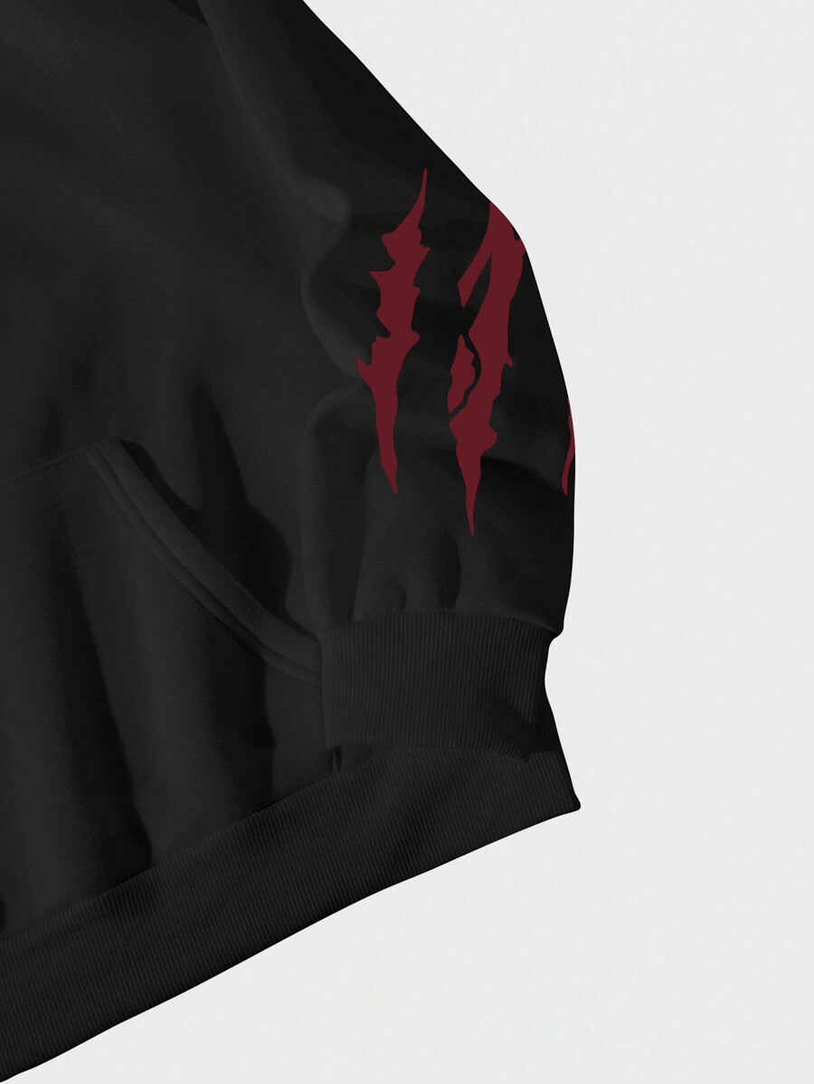 Anime Men's Cartoon Print Hooded Long Sleeve Sweatshirt, For Fall Winter