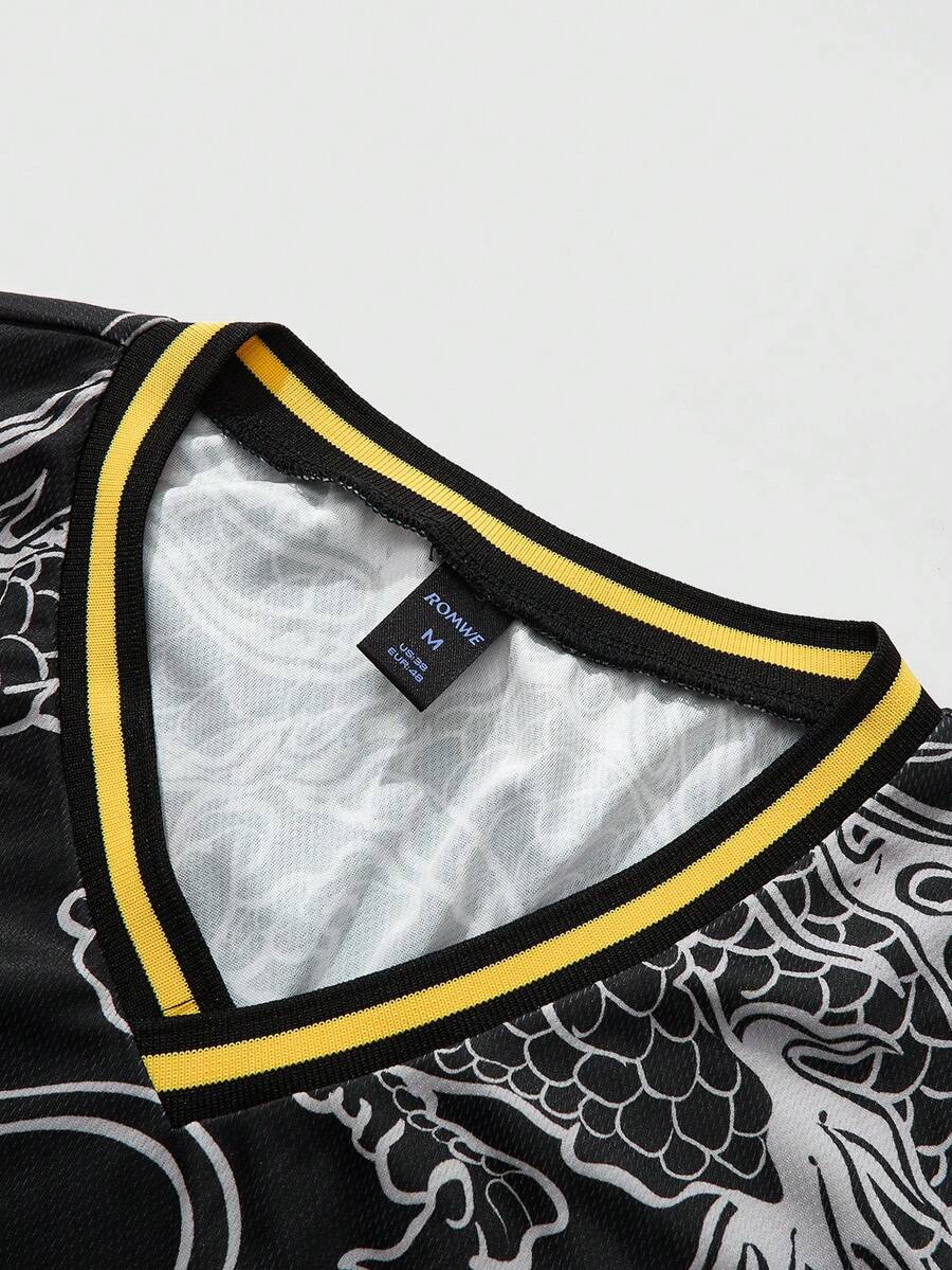 Anime Men's Casual Letter & Dragon Graphic Round Neck Loose Fit Sleeveless Tank Top, Summer