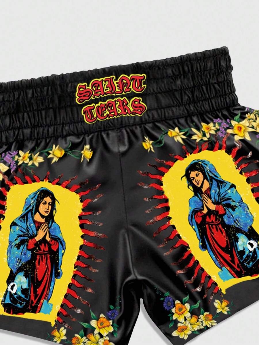 Prep Men's Floral Print Character Elastic Waist Relaxed Fit Boxing Shorts