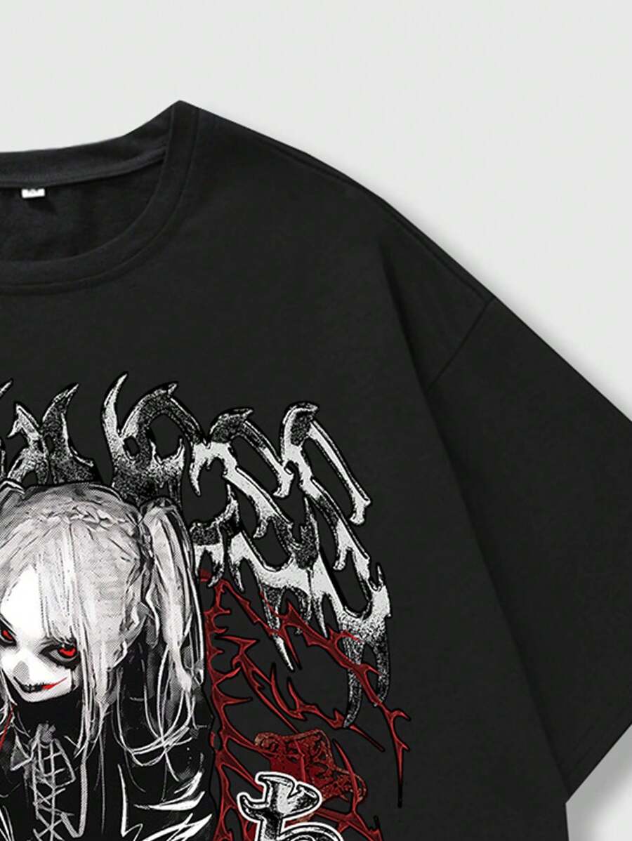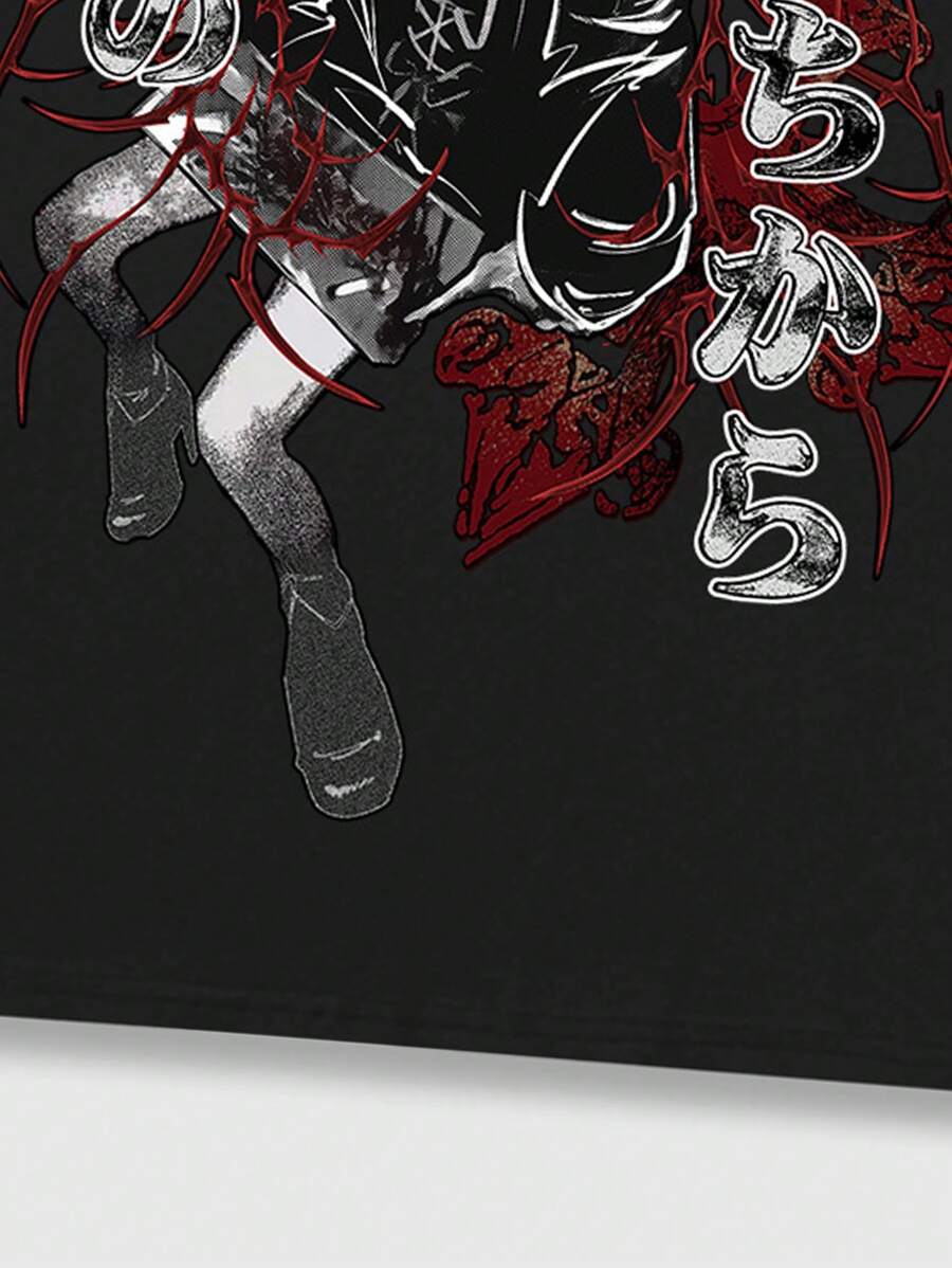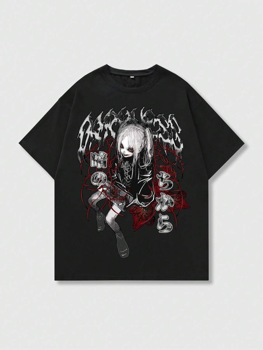 Anime Men's Summer Cartoon Characters Letter Printed Round Neck Short Sleeve Casual T-Shirt, School