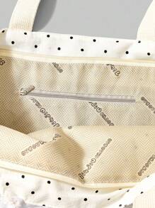 Anime Polka Dot Print Contrast Lace Large Capacity Shoulder Tote Bag, Fashion Versatile Women's Handbag Suitable For Vacation, Party, Shopping