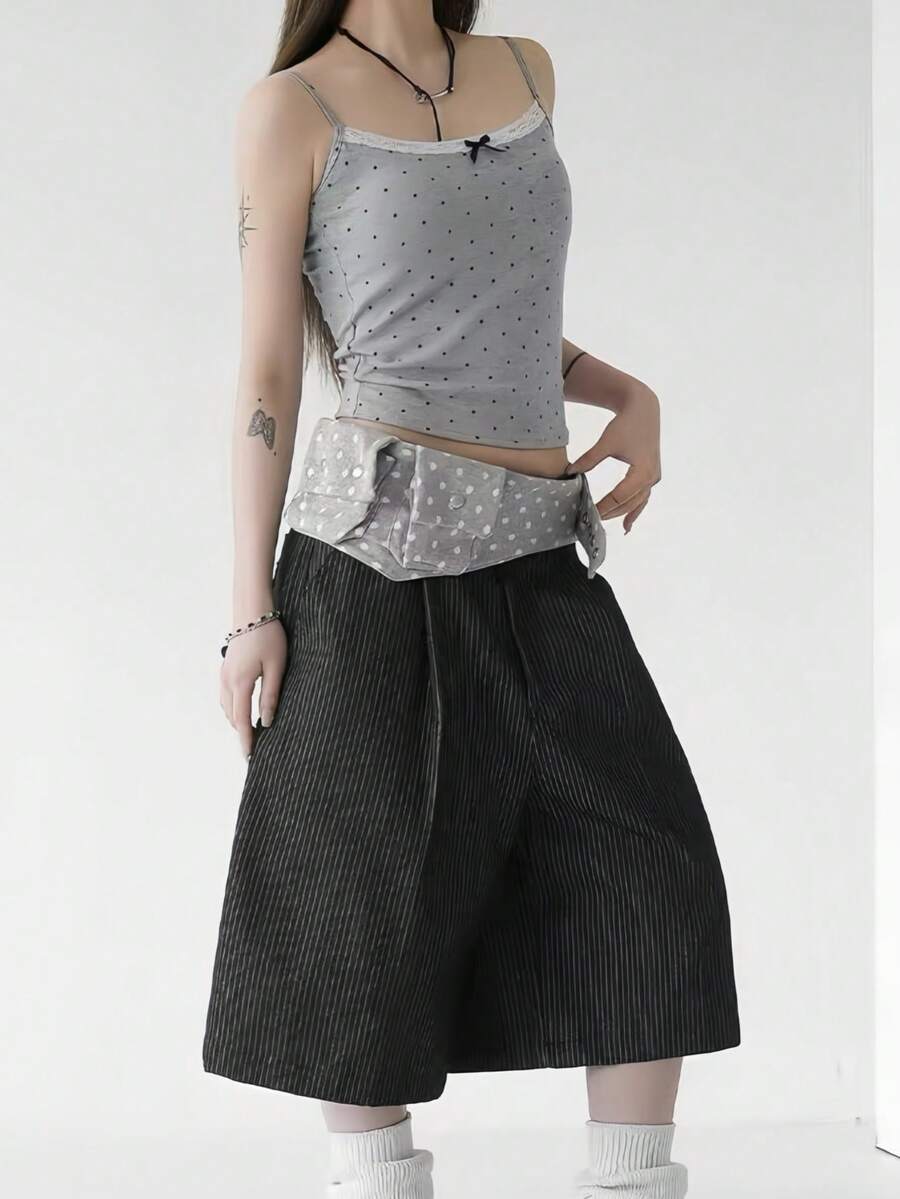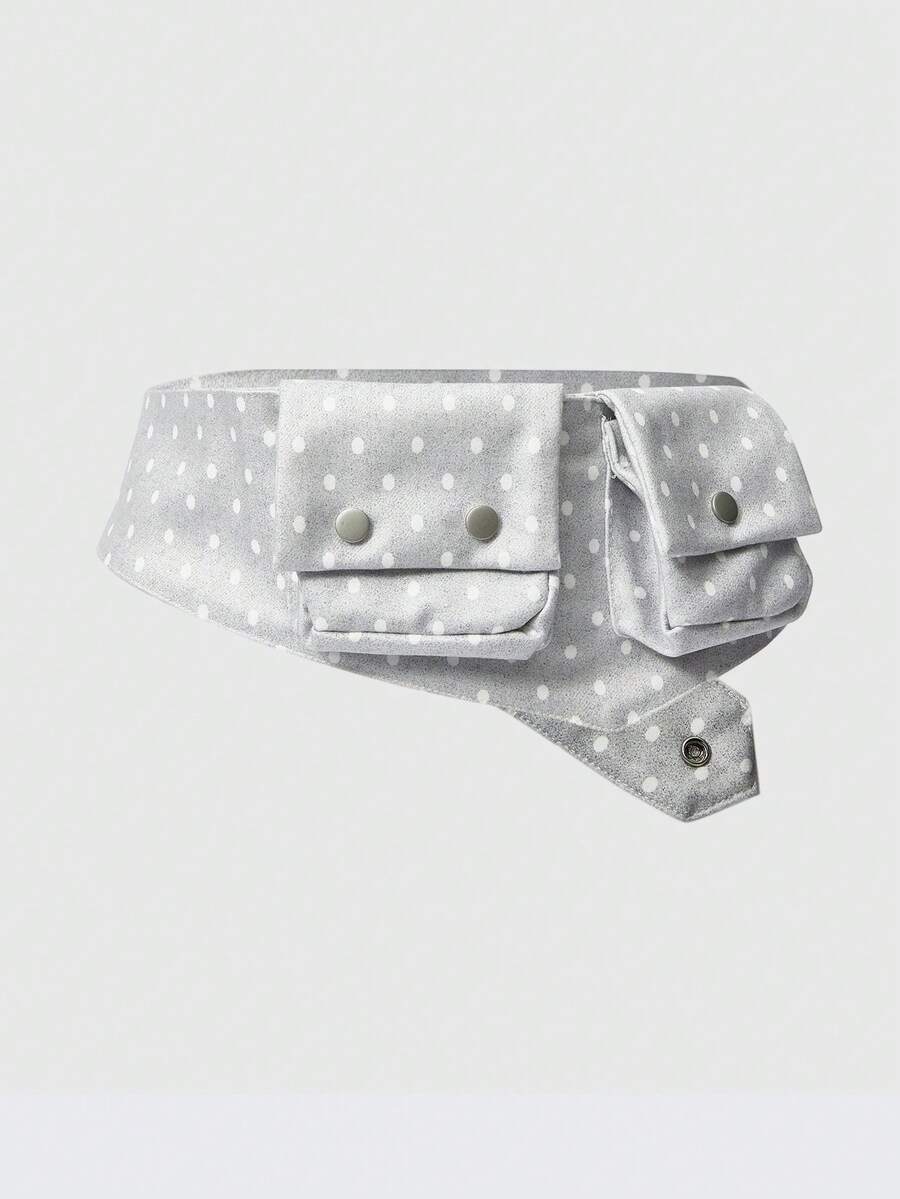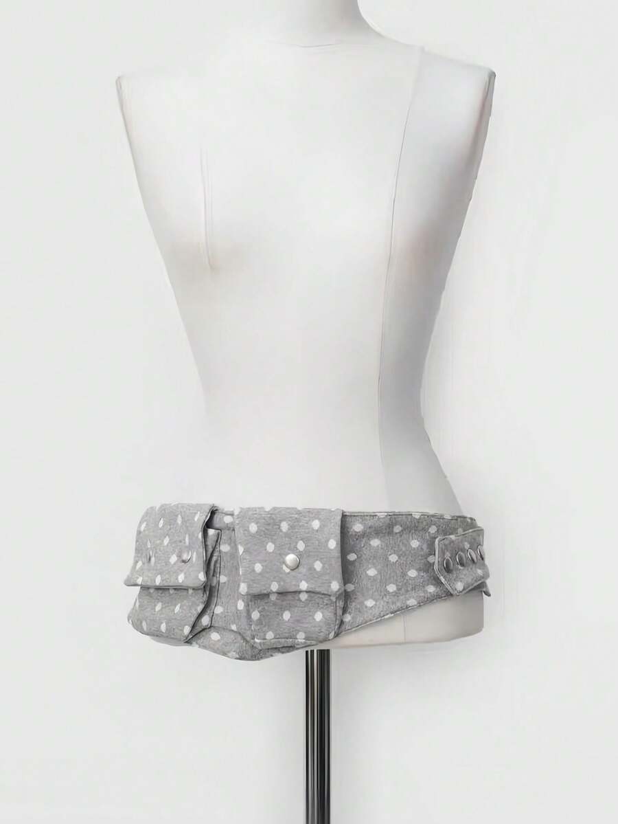 Anime Retro Black & White Polka Dot Print Pocket Waist Bag With Adjustable Width Belt, Fashion Versatile Accessory Combo For Commuting