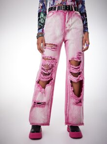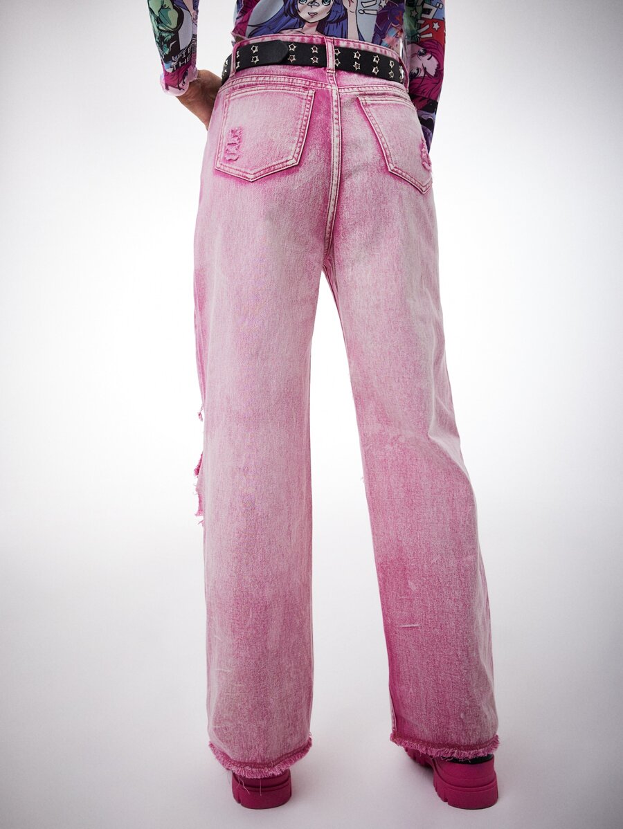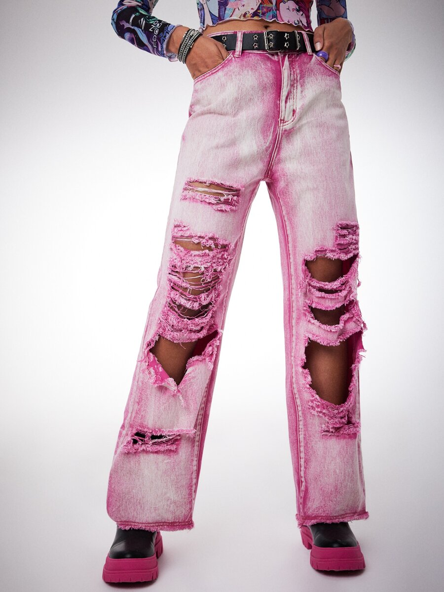 Anime Ripped Straight Leg Jeans Without Belt