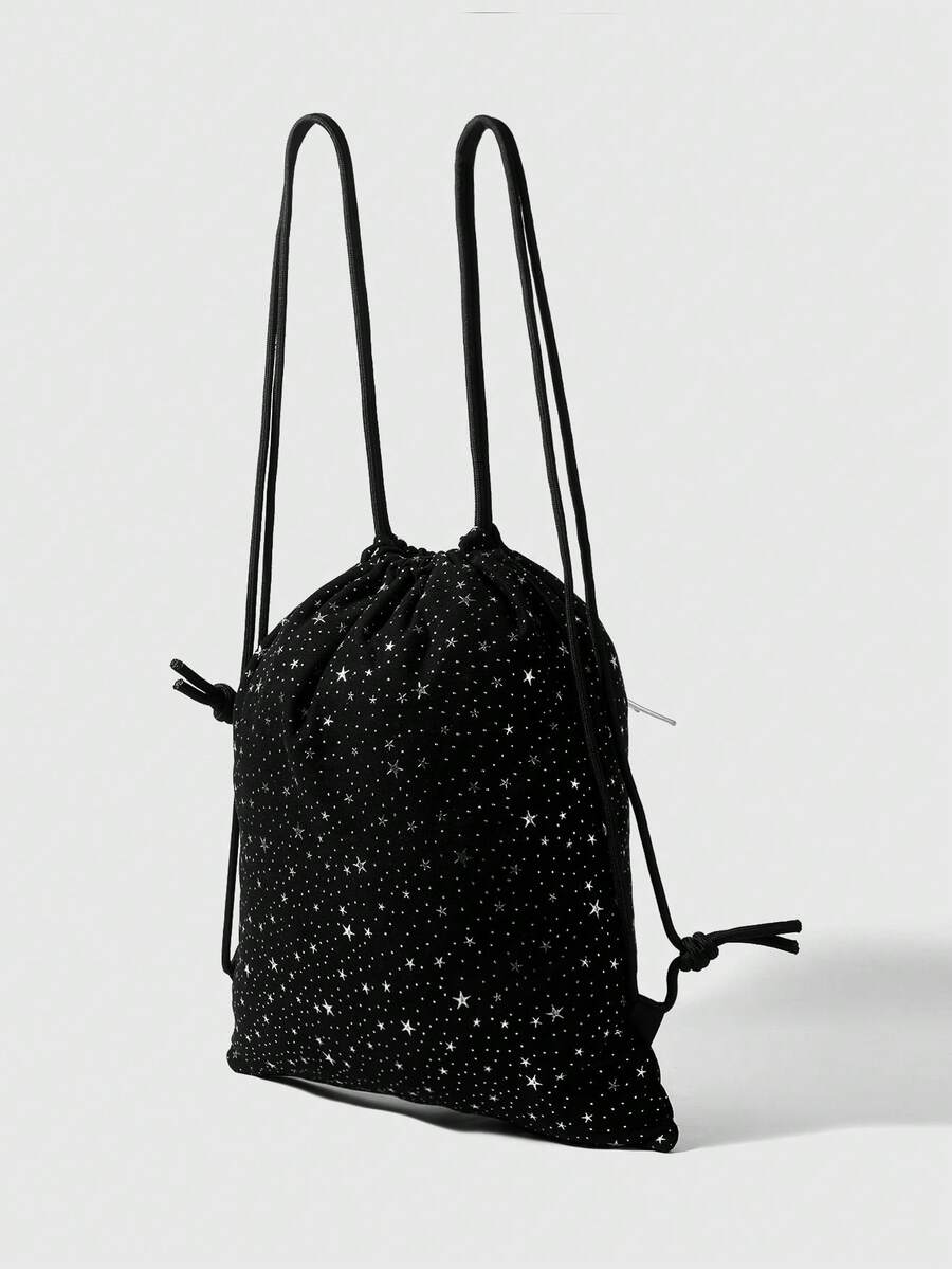 Anime Starry Sky Print Pattern With Pentagram Pendant Large Capacity Multi-Pocket Zipper Transparent Pocket Drawstring Closure Backpack, Fashionable And Versatile For School, Vacation, Party, Shopping