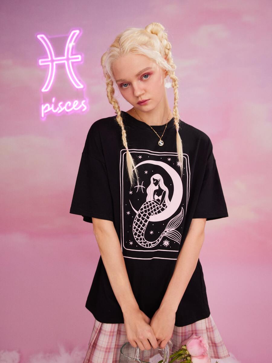 Areohzeddesign Starsalign Pisces Figure & Moon Graphic Drop Shoulder Tee